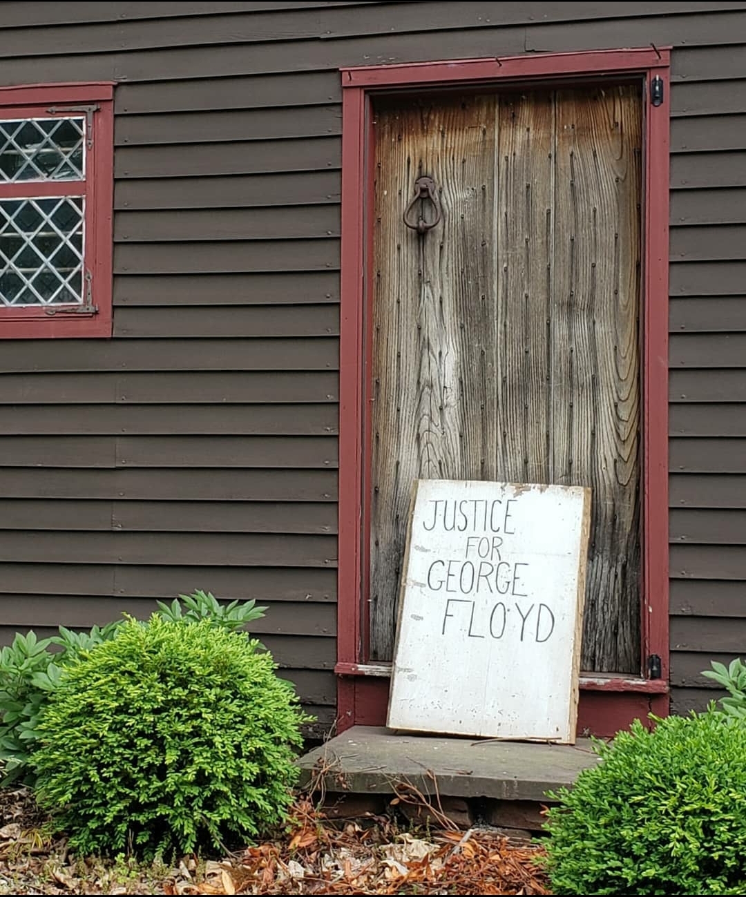 This is a sign that was put at the door of a historical building in Old Wethersfield, shortly following the killing of George Floyd in Minneapolis. The killing of George Flyod, more specifically, the recording, are what caused the widespread Black Lives Matter protests over the summer. To me, this image is important for the archive because it shows the significance of this event in 2020, because it shook the world, not even just the US, and that support for the movement and support for justice is being called for from ~1.3k miles away. The video was spread over social media, which allowed for it to reach that level of audience that it was exposed to.