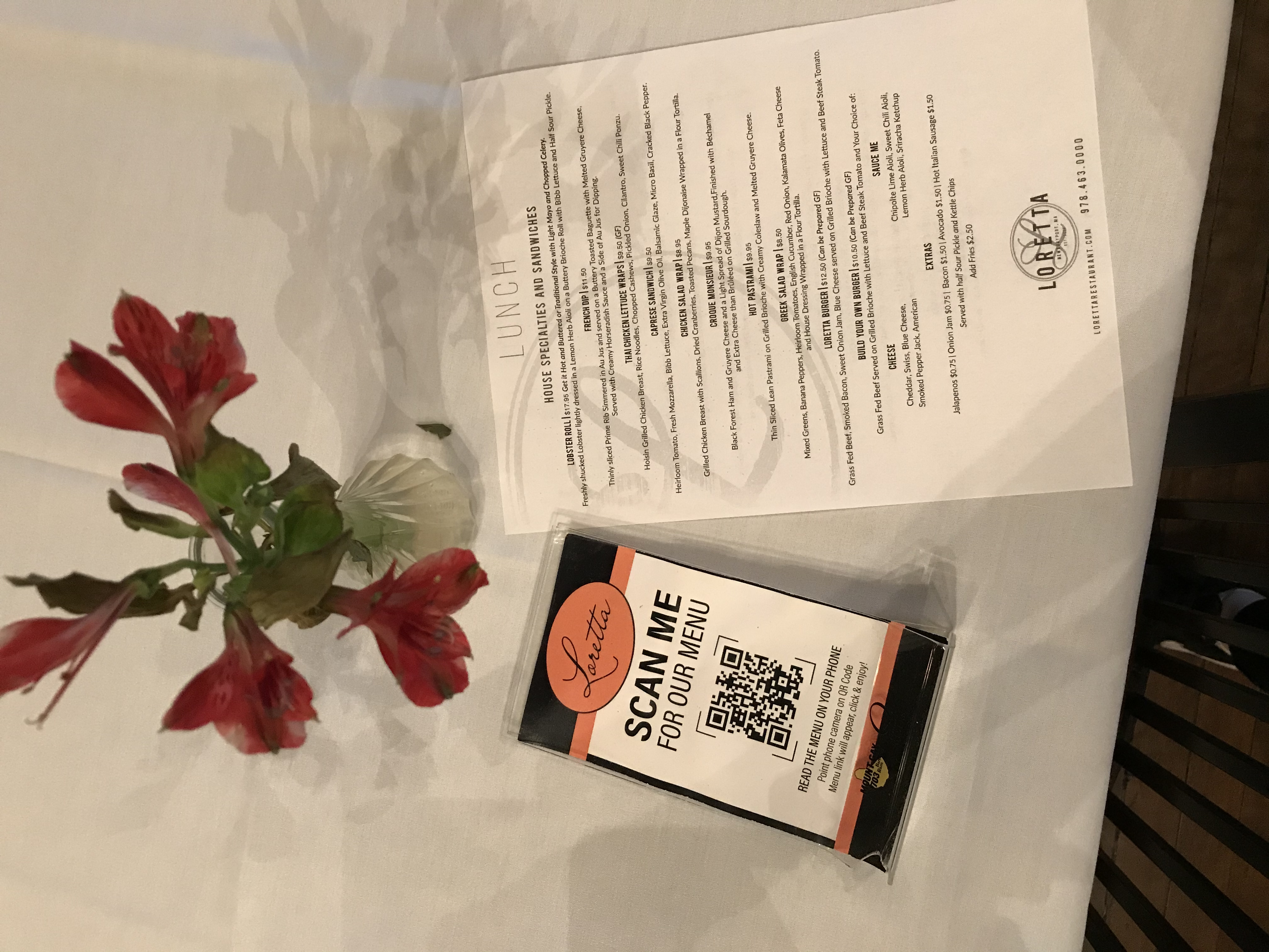 Instead of using reusable menus, to limit what people are touching, Loretta created scannable and paper menus for guests to use. Guests can scan the code on the paper provided, and a link pops up to bring people to the restaurants menu. This is an important part of the pandemic, because people are encouraged not to touch everything they see, so by limiting what people are touching, Loretta has limited the spread of potential germs. When future historians look back on restaurants during the pandemic, they will see how a lot of establishments created scannable menus for their guests. Some people have a difficult time with the snanable menus, which is why the paper menu is offered. People are typically eager to learn how to use the scan menus though, sometimes out of frustration for it not working, but also because of the growing popularity of scanning items with phones.