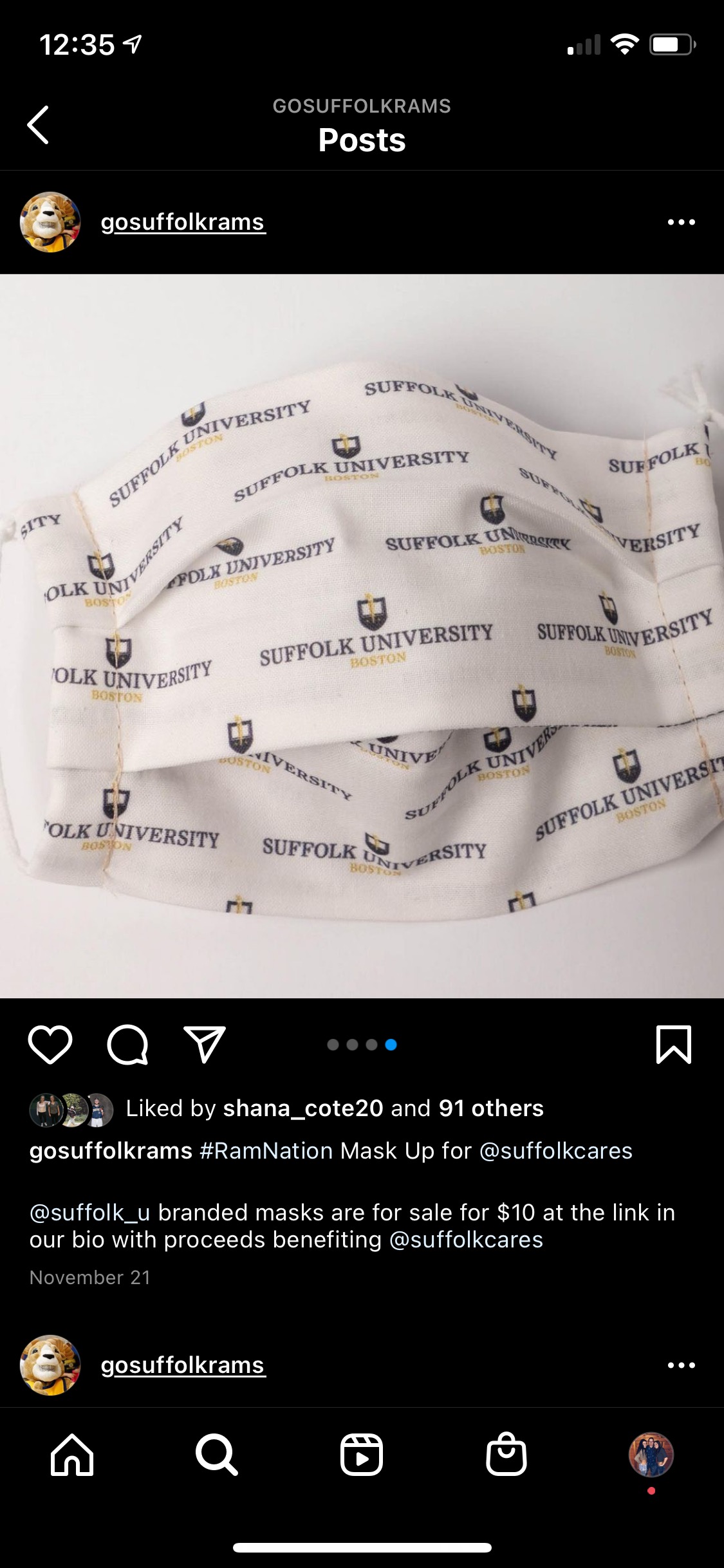 Everyone has a mask these days and they are all so unique or plain. Suffolk created their own mask along with a few other styles that students could buy. It is easier to recognize suffolk students when wearing these masks. It is cool to see Suffolk step up and be a part of the pandemic and create new things for their students. Us athletes got a separate mask, seen in the second photo, it is called a gaitor. A lot of the athletes would wear them walking or at practice/in the gym. It separates the athletes from the regular students. Suffolk wanted to be a part of this history so they created these masks. These objects are important to Suffolk’s history through the pandemic and how they chose to help their students out. This is also significant in the year 2020 because everyone was designing their own masks and it was cool to see how all of the colleges and universities came together to create their own masks and contribute to today’s history.