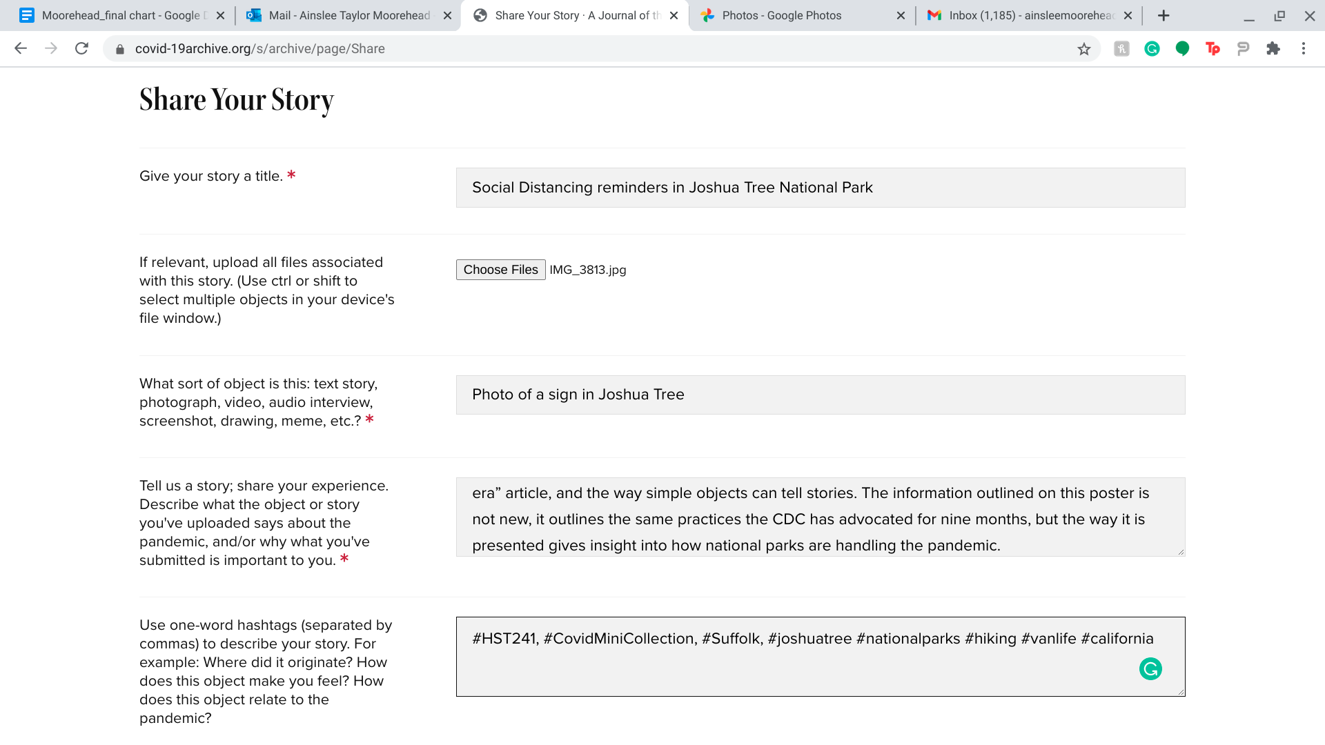 This item was submitted on December 16, 2020 by Ainslee Moorehead using the form “Share Your Story” on the site “A Journal of the Plague Year”: https://www.covid-19archive.org/s/archive