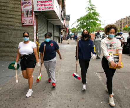 Locals participate in cleaning up their neighborhood after the lootings of June 2nd.