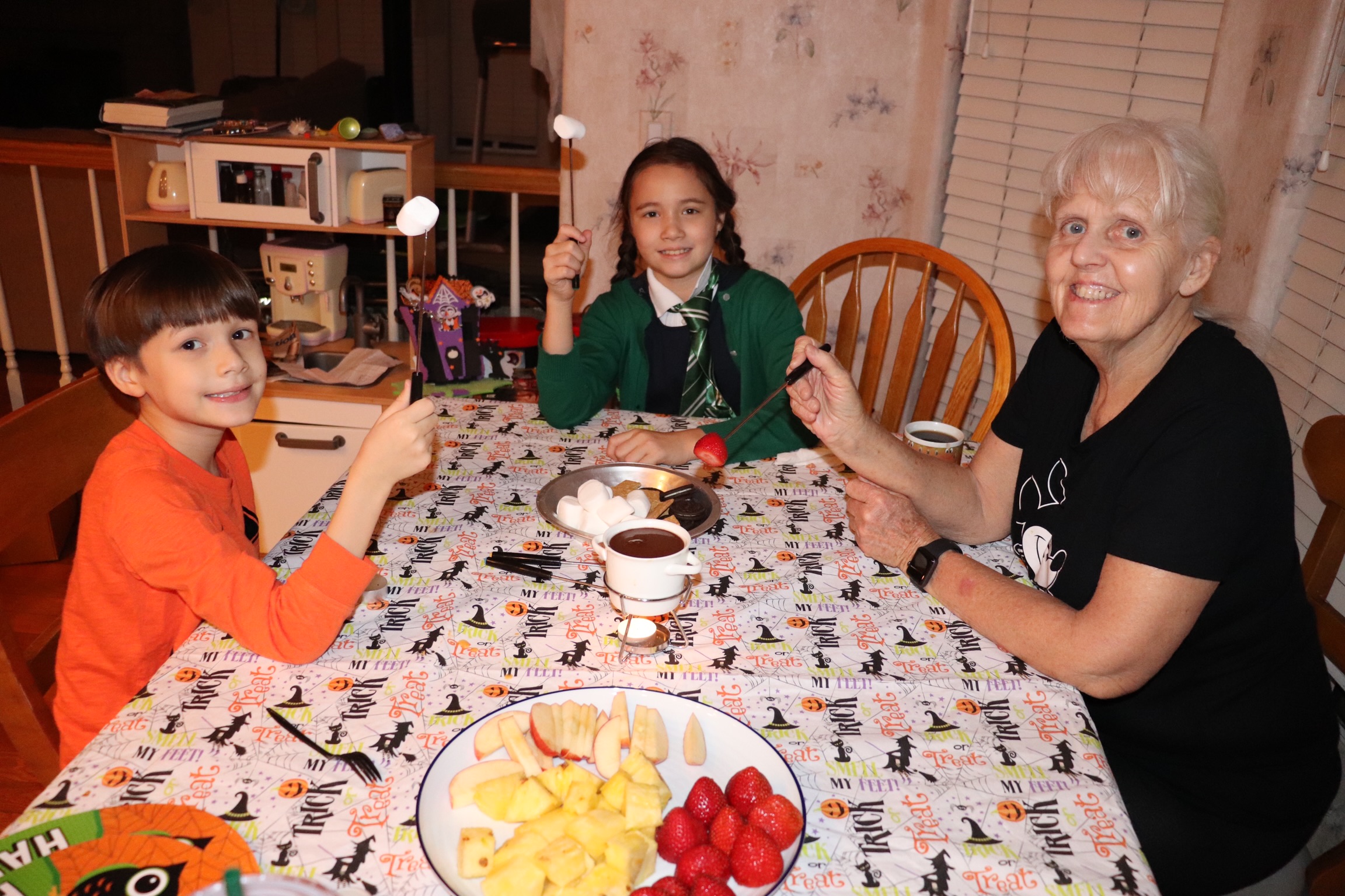 Halloween is usually a month long celebration at our house. We plan our costumes months in advance. We go to Disneyland at least a dozen times to enjoy the special Halloween treats, decorations, and to wear the insane amount of Disney Halloween shirts we own. On Halloween night, we serve at our church running game booths for the community and come home just in time to trick or treat (and usually get A LOT of candy because we’re some of the last trick or treaters). This year, of course, every single thing listed above was cancelled. With so many disappointments this year, we committed to making Halloween a celebration from morning until night. Making our own backyard carnival, the kids bobbed for apples, carved pumpkins and played Halloween soccer (okay, it was just soccer but we were in costumes!) My daughter was over the moon to have us all dress as Hogwarts students, except for her little brother who dressed as her owl. Lunch included ghost shaped chips, jack-o-lantern quesadillas, grape “eye balls,” and guacamole in a jack-o-lantern pepper. To make dinner extra special, we brought out the fondue set we registered for when we got married over 15 years ago and never opened. The kids loved a dinner of dipping into cheese and chocolate. The one thing my son repeated all of October was he wanted to “trick or treat to all the doors in the house.” Undaunted, we turned off most of the lights, put a bowl of candy inside every door in the house, and put either an adult or a dressed up stuffed animal (there’s only three adults here and way more doors) at each door. The kids were genuinely excited to trick or treat and actually knocked at every single door, and gleefully filled their bags with candy. It’s easy to focus on all that has been lost this year, but this simple, stress free, at home Halloween may have ended up their favorite one ever.