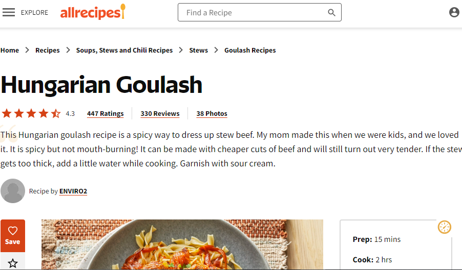 Over the pandemic, I was with my family at our ranch in Alabama. As it started to get cold, I decided to make the only dish I really love to cook, a Hungarian goulash. It's a stew with meat, noodles, and sauce. It's very hearty and filling on cold days especially sitting by a fire in the middle of nowhere. Taste comparisons I can think of are like a beef stroganoff but with more spice since paprika features so heavily in the dish. It's easy, and the majority of the time involved is hands-off as it cooks so plenty of time to hang out with family or do whatever without having to worry. I think that cooking was a great comfort to many as we were stuck inside with the constant news of the pandemic's effect on us and low morale as the months wore on. For me, making goulash always makes a bad day better since it's a dish I love and there's just something really calming about the smell of cooking food and a warm kitchen. I know there were lots of recipes people shared online as a way to cope with being away from family and friends.