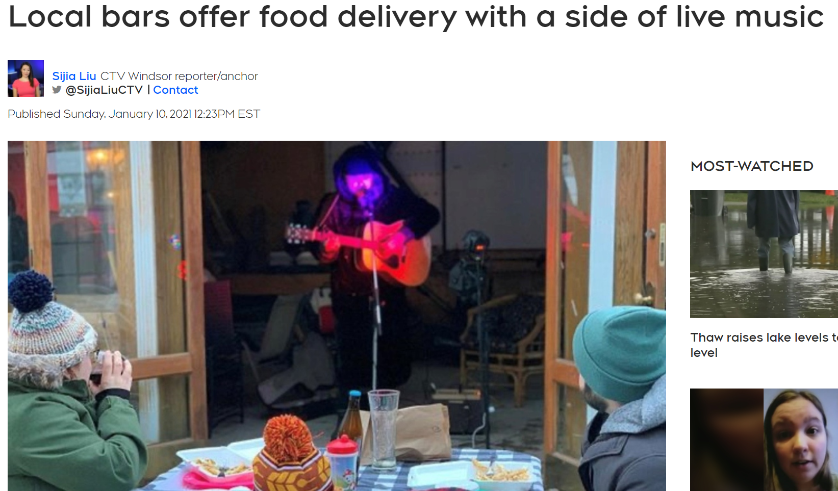 Two downtown bars in Windsor, Ontario, are offering live music alongside food delivery. Customers can choose from multiple "Gravy Train" packages which offer food and performance from a local musician.