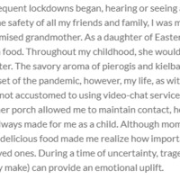 I am teaching HST 643 Global History at Arizona State University during the Spring A semester of 2021. For the second time, I am asking enrolled students to submit a sensory history story related to the pandemic. The students were instructed to read at least the introduction of Melanie Kiechle's Smell Detectives before posting their story. This way, they would have a better understanding of what sensory history is and why it matters. I revised the instructions this time to push students toward non-visual stories.