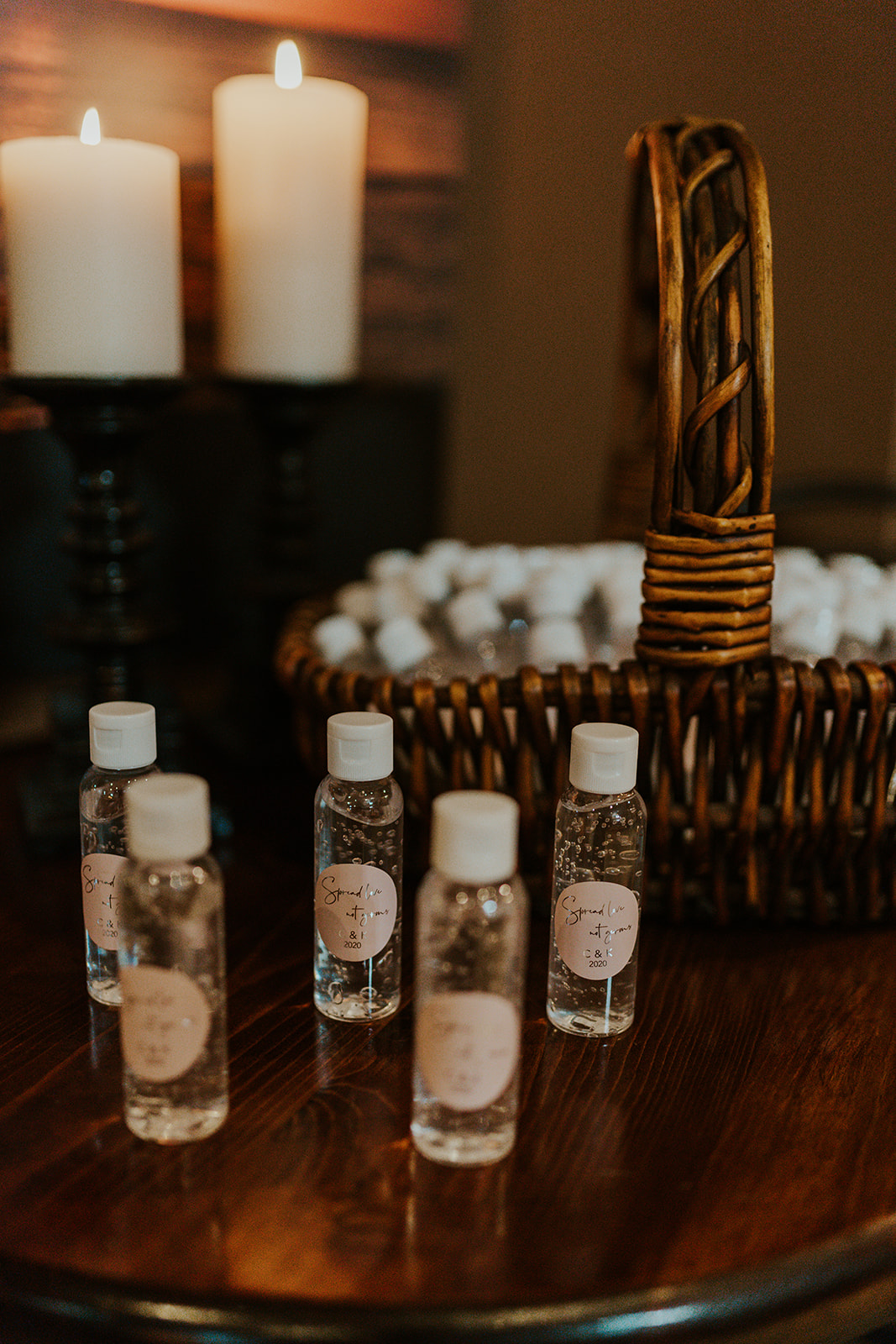 Our marriage was supposed to be May 1, 2020, but soon after the lockdown following COVID-19 being deemed a global pandemic, we made the difficult decision to reschedule our wedding. Being overly optimistic, we rescheduled to September 25, 2020, assuming that the world would return to normal by then. We were wrong. Rather than rescheduling to another date and taking another shot in the dark on when the world might be safe enough for a normal wedding, we continued on with our plans for a fall wedding. We shortened the guest list and took several precautions. The wedding and the reception later that night were both outside. We asked our guests to stay home if they were sick and provided hand sanitizer to everyone (picture attached). Our wedding was safe and beautiful, even with the pandemic ongoing. While there was definitely risk, we did our best to ensure everyone's safety and made the decision to push on with our lives.