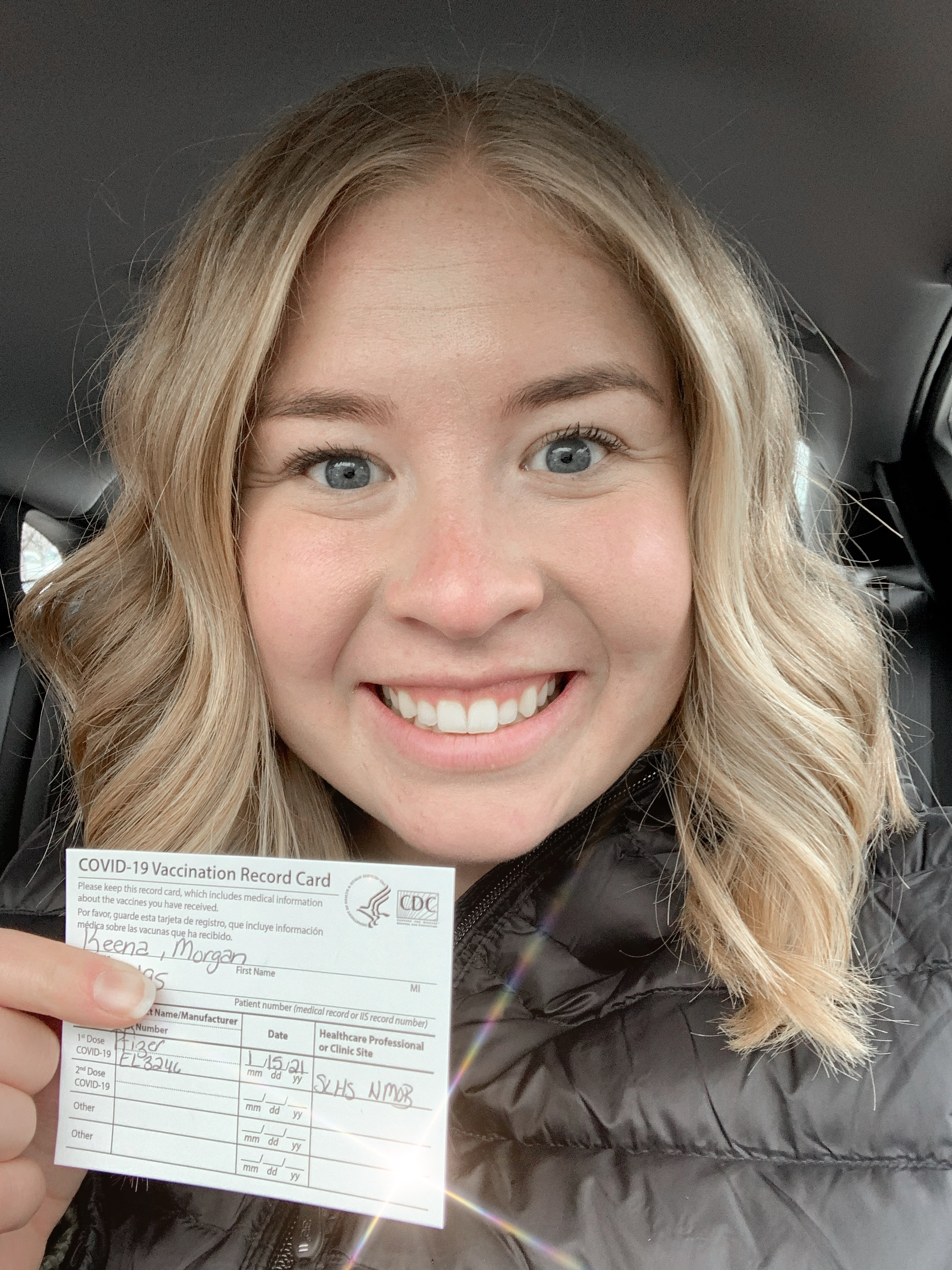 My name is Morgan Keena, I live in Nampa, Idaho, I am a 7th-grade social studies teacher, and I got my first dose of the Covid-19 vaccine today! Teachers weren't scheduled to start receiving the vaccine in Idaho until late February or early March. However, on January 11, 2021, our state superintendent of education delivered a speech to the Idaho legislature urging them to pass a law that would require all school districts to stay open unless mandated by the governor. Additionally, she urged that all students return to in-person learning full time as quickly as possible. On Tuesday, January 12, 2021, the governor of Idaho, Brad Little, announced via a press conference that K-12 teachers and staff were moved to the top tier and could start receiving the vaccine on January 13, 2021. This came as a huge shock to educators everywhere, but we know it is tied to the demand to have schools 100% in person. My school district, Nampa School District, then took on the momentous task of figuring out how to obtain vaccines for their nearly 1,000 staff members. Less than 36 hours later, they had secured vaccines for us at three major health systems and two smaller urgent care locations. The district also had one health system offering the vaccine on Saturdays and Sundays to better work with the teacher schedules. We managed to crash the portals of two health systems by overwhelming them with many vaccine sign-ups. I (by a miracle) was able to secure an appointment for January 15, 2021. Let me tell you; I have never been so excited to get a shot in my life.