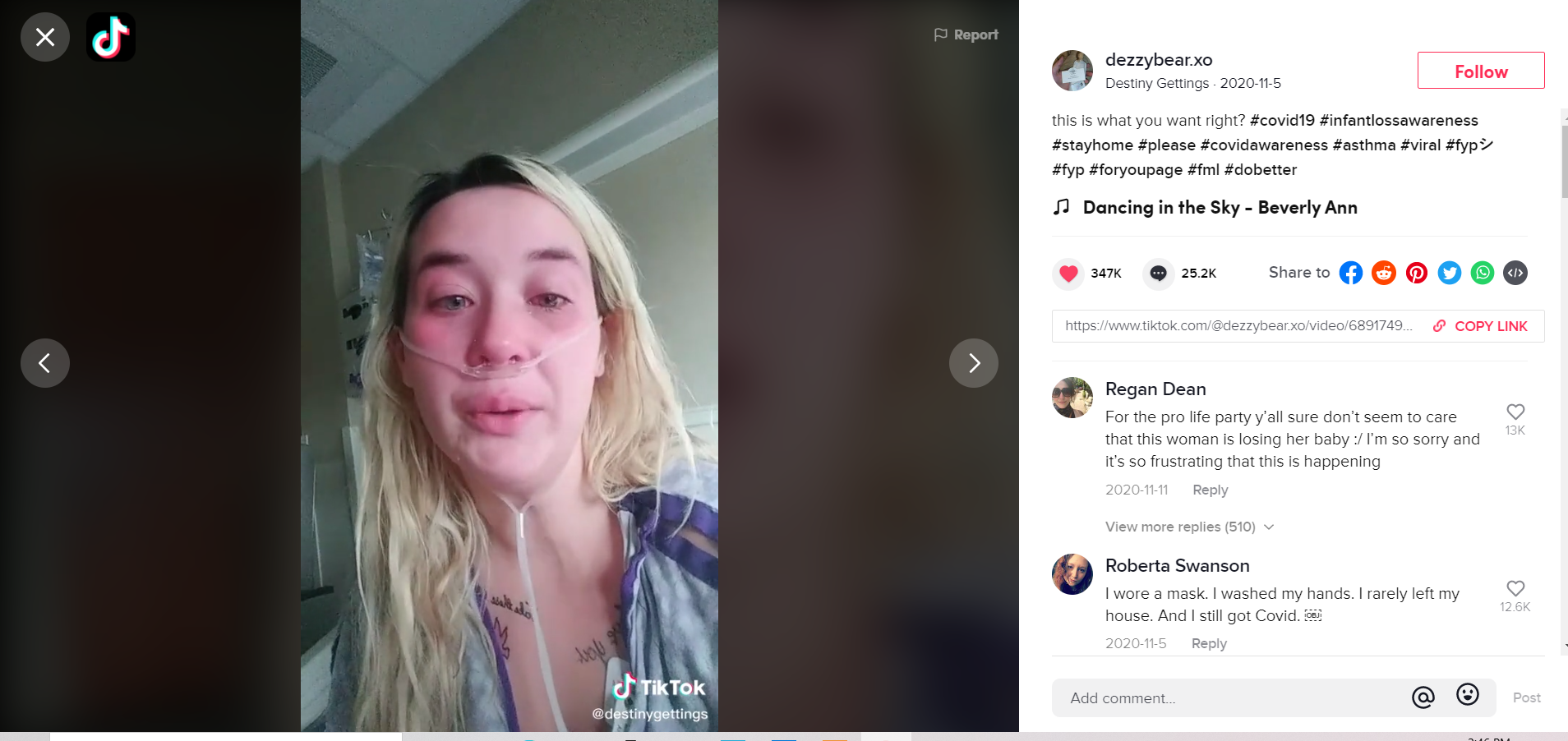 A heartbreaking video by Destiny Gettings who became sick with Covid-19 and lost her unborn child.