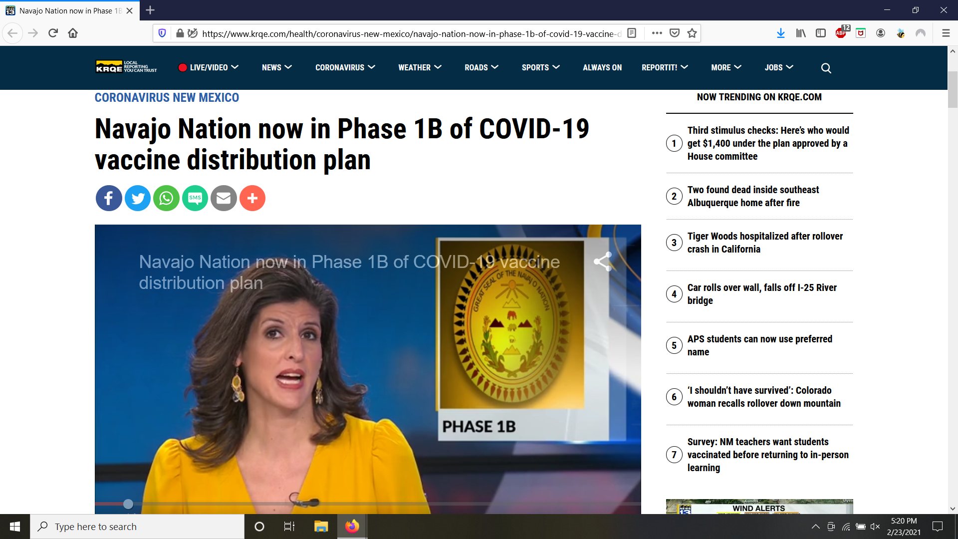 Navajo Nation in Phase 1B of COVID-19 vaccine distribution plan (updated Jan. 21, 2021)