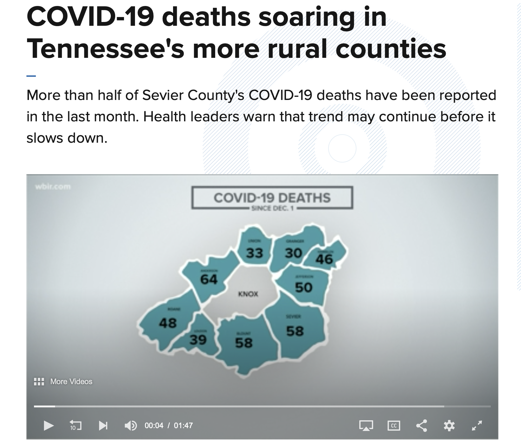 COVID-19 deaths soaring in Tennessee's more rural counties