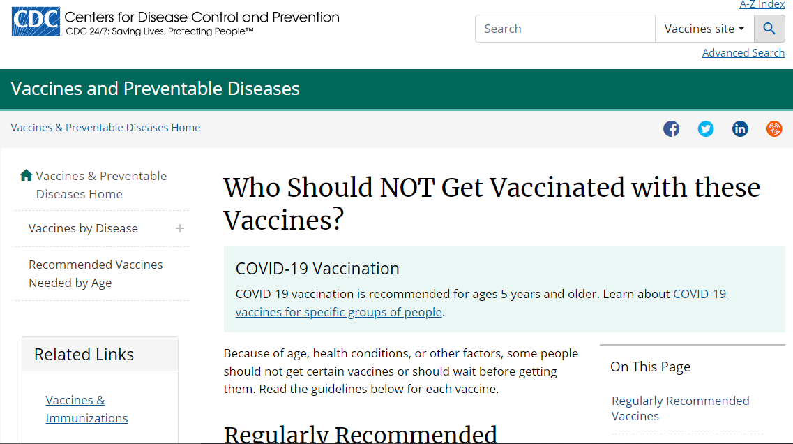 This is the official CDC website and it explains everything about the vaccine including talk about who should, and should not, get the vaccine. This includes factors such as your health status, age, and more.