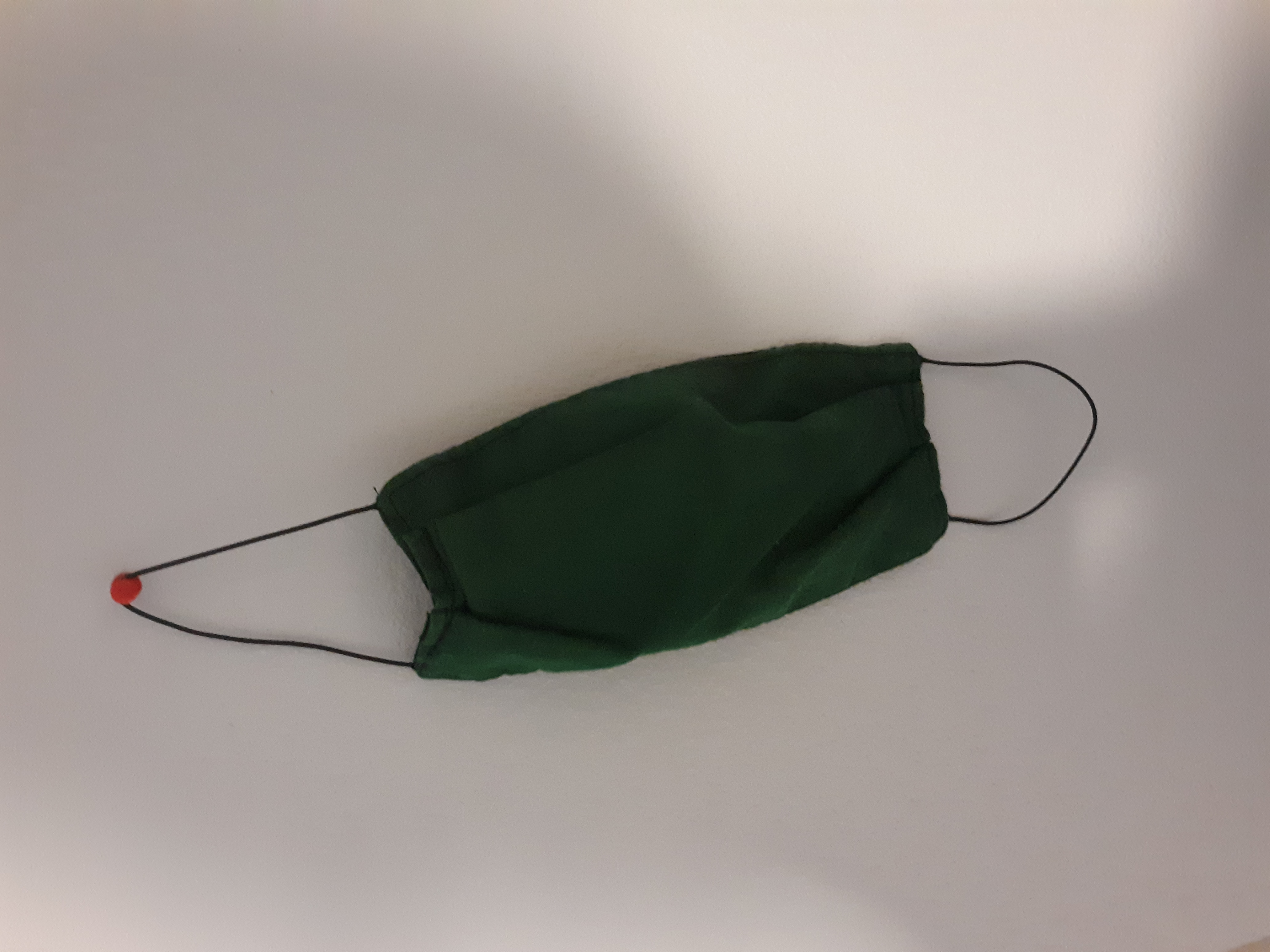 A picture I took of a homemade cloth mask. Made by my mother a doctor who knows how to sew. A home made cloth mask.
