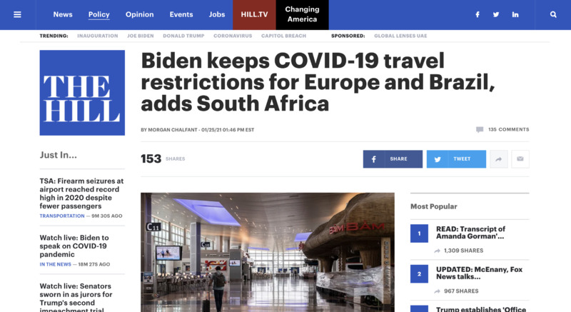 New travel bans. In reference to new strains discovered in South Africa and England.