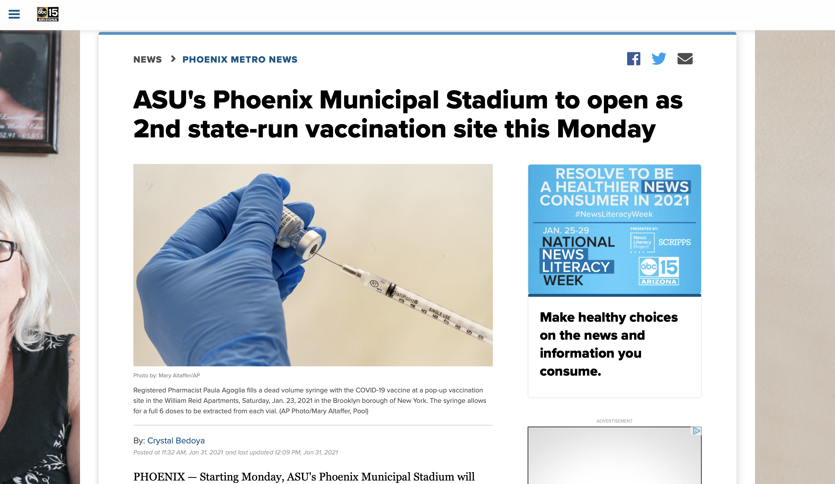 Phoenix Municipal Stadium to Serve as Valley's Second State-Run Vaccination Site