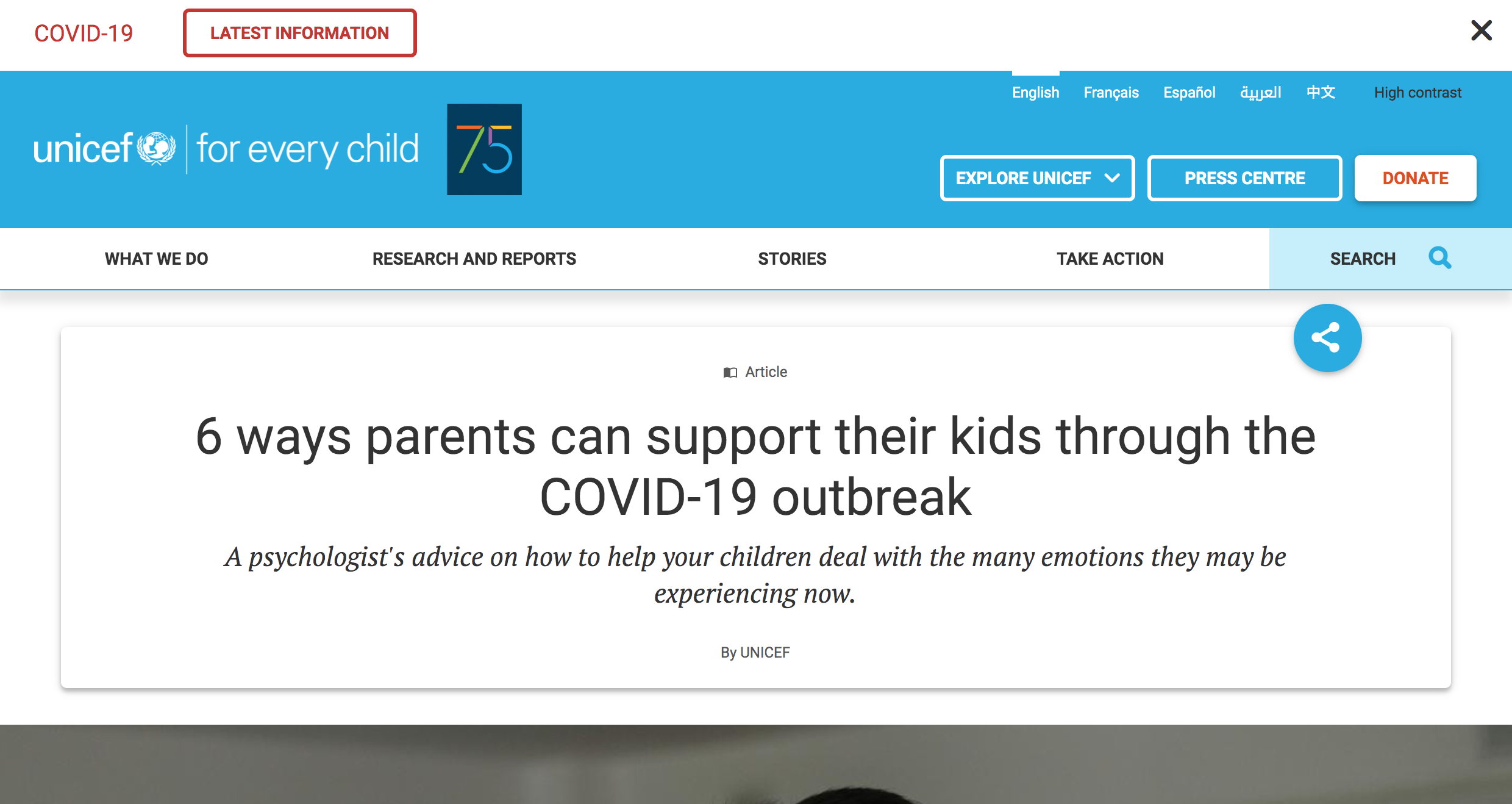 Website on "How parents can support their kids through the COVID-19 outbreak"