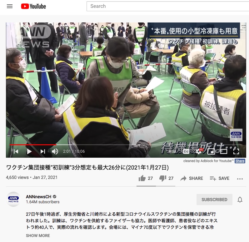 ワクチン集団接種“初訓練”3分想定も最大26分に(2021年1月27日) – Vaccine mass vaccination "first training" assumed 3 minutes and up to 26 minutes (January 27, 2021)