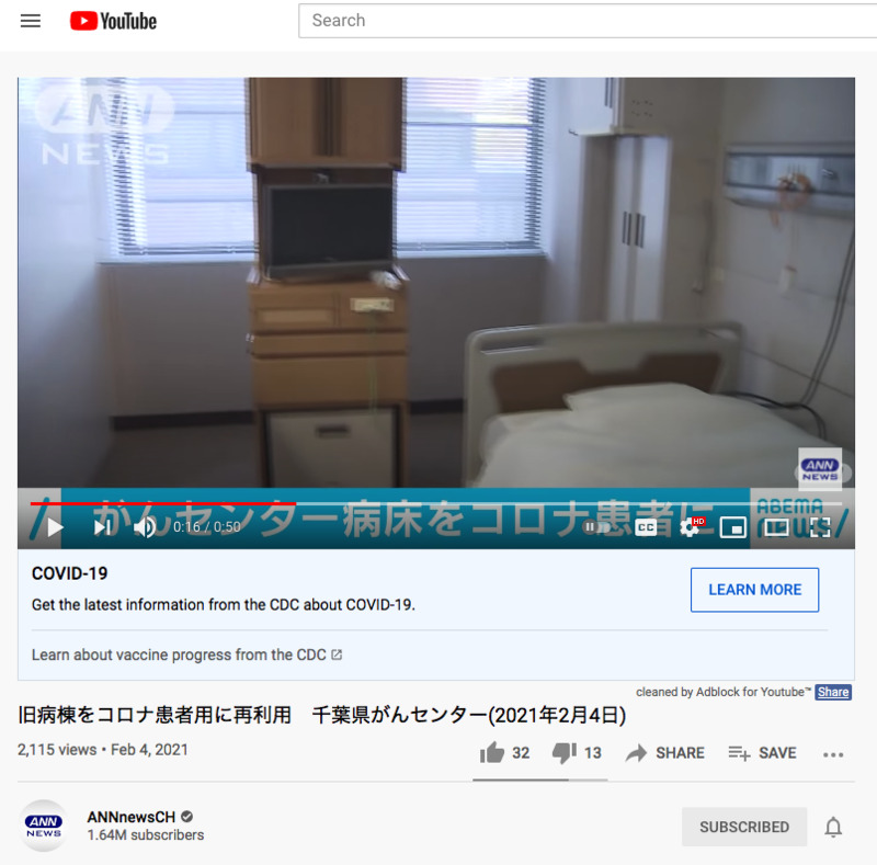 Reusing the old ward for coronavirus patients Chiba Cancer Center (February 4, 2021)