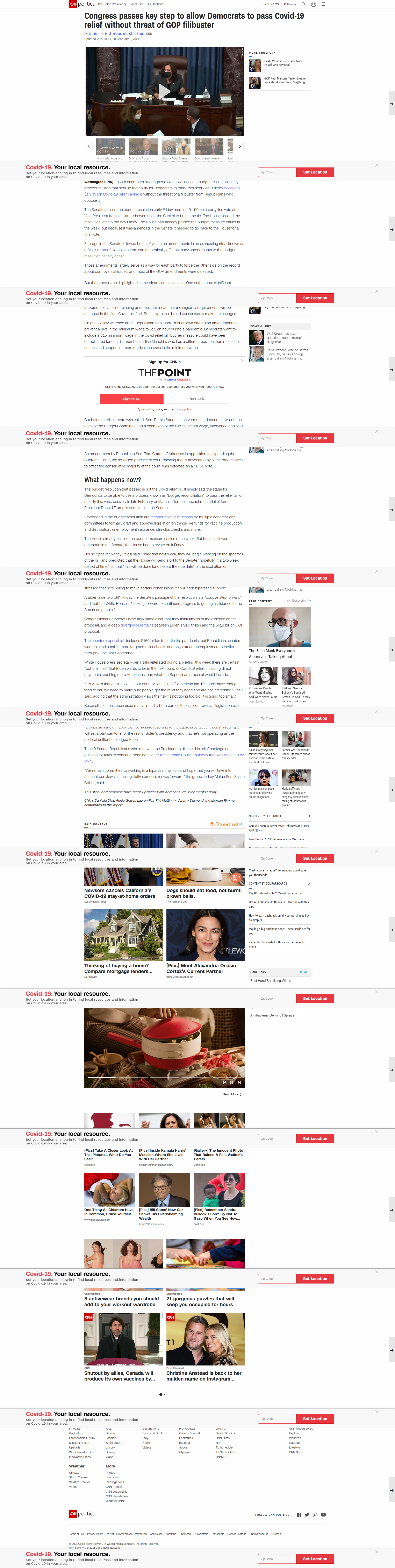 In a 51-50 partisan vote, the Senate Democrats inch towards passing President Joe Biden's $1.9 trillion dollar relief package. The vote enables Democrats to move forward without fear of a filibuster blocking. There was little bi-partisan effort, but Senators Joe Manchin (D-WV) and Susan Collins (R-ME) were able to strike a deal preventing high-income earners from receiving a $1,400 stimulus check. The bill is most likely to pass later this month after the Senate impeachment trial of former President Donald Trump is over.