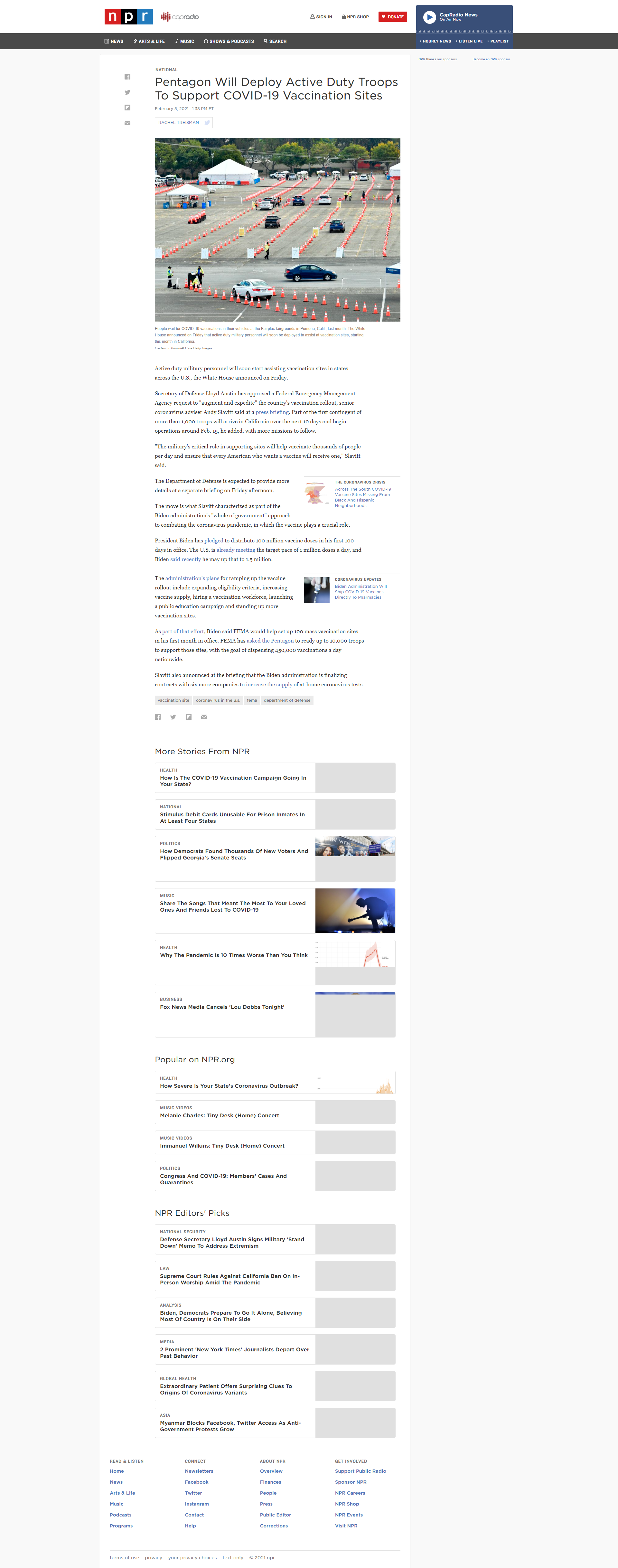 The White House announced that 1,000 troops will be deployed to California in the next few weeks to aid with the vaccine roll out process. This is a single part of the Biden administration's "whole government" approach to ended the virus. The administration is already setting the goal of 1 million doses per day and may up that to 1.5 million.