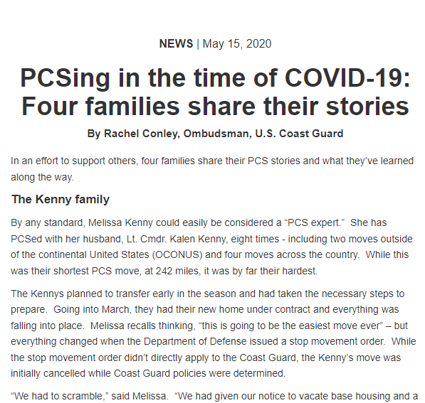 Title & Interview by Rachel Conley, Ombudsman, U.S. Coast Guard