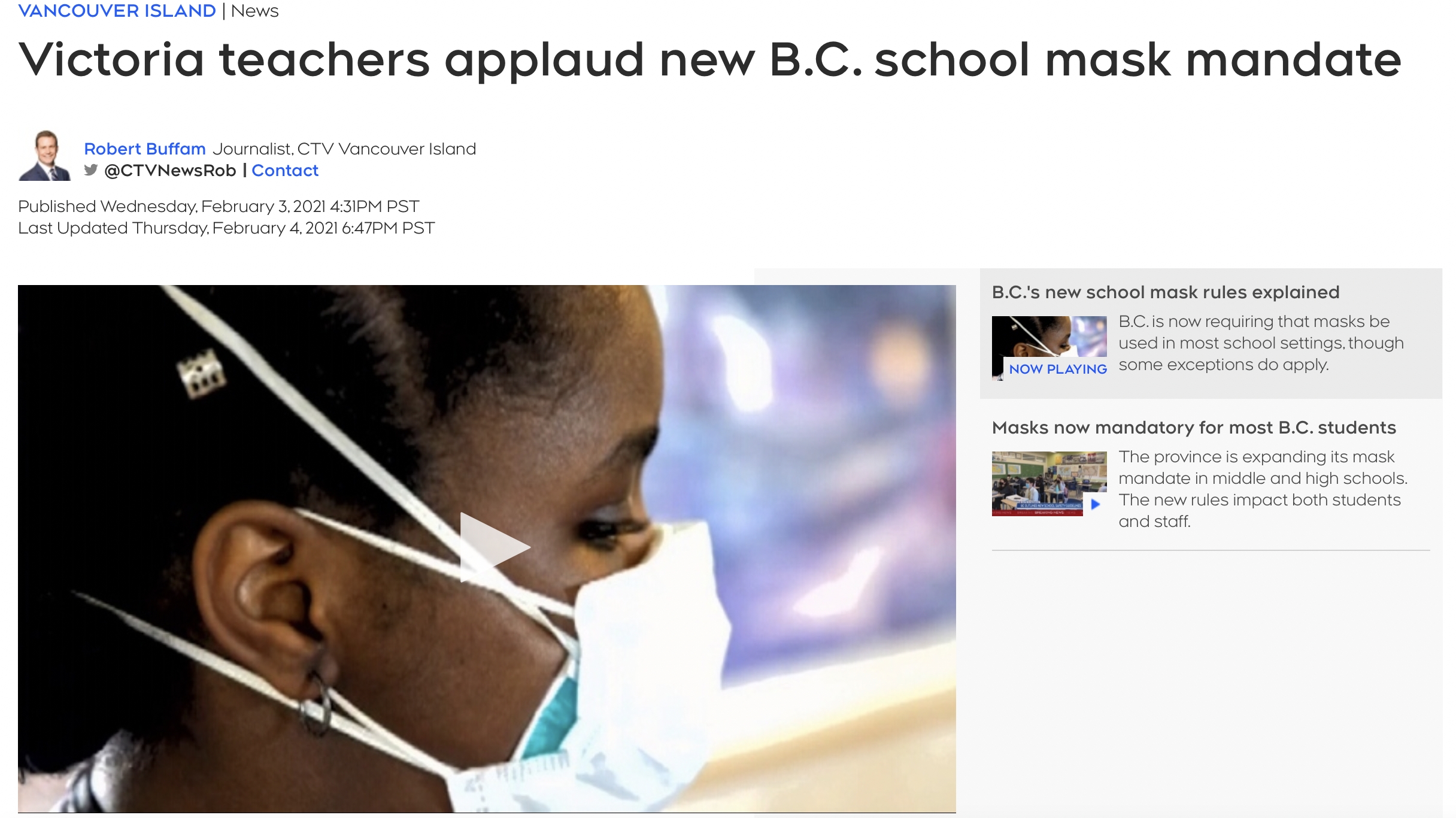 Victoria, B.C teachers appreciate the new mask mandate for middle and high students to wear masks in the classroom. Some teachers note that they wish they had also included elementary school students as well. Students will be allowed to remove their masks at their desks when there is a barrier present. British Columbia provincial health officer Dr. Bonnie Henry says that they are continually reviewing the guidelines.