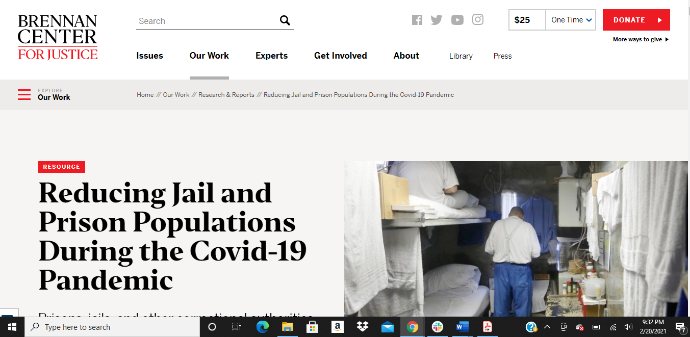 "Brennan Center Recommendation: Elderly and sick people and those incarcerated for parole violations should be released or recommended for release under compassionate release provisions or another authority. Barring that, prison officials should use their discretion to transfer people to community corrections options."