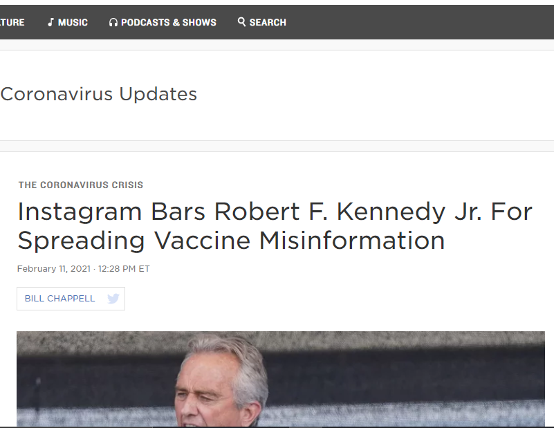 RFK Jr has been censored for his opinions on vaccines. The secondary factor from this whole pandemic has been the evolution of social media and internet censorship of certain opinions and individuals.