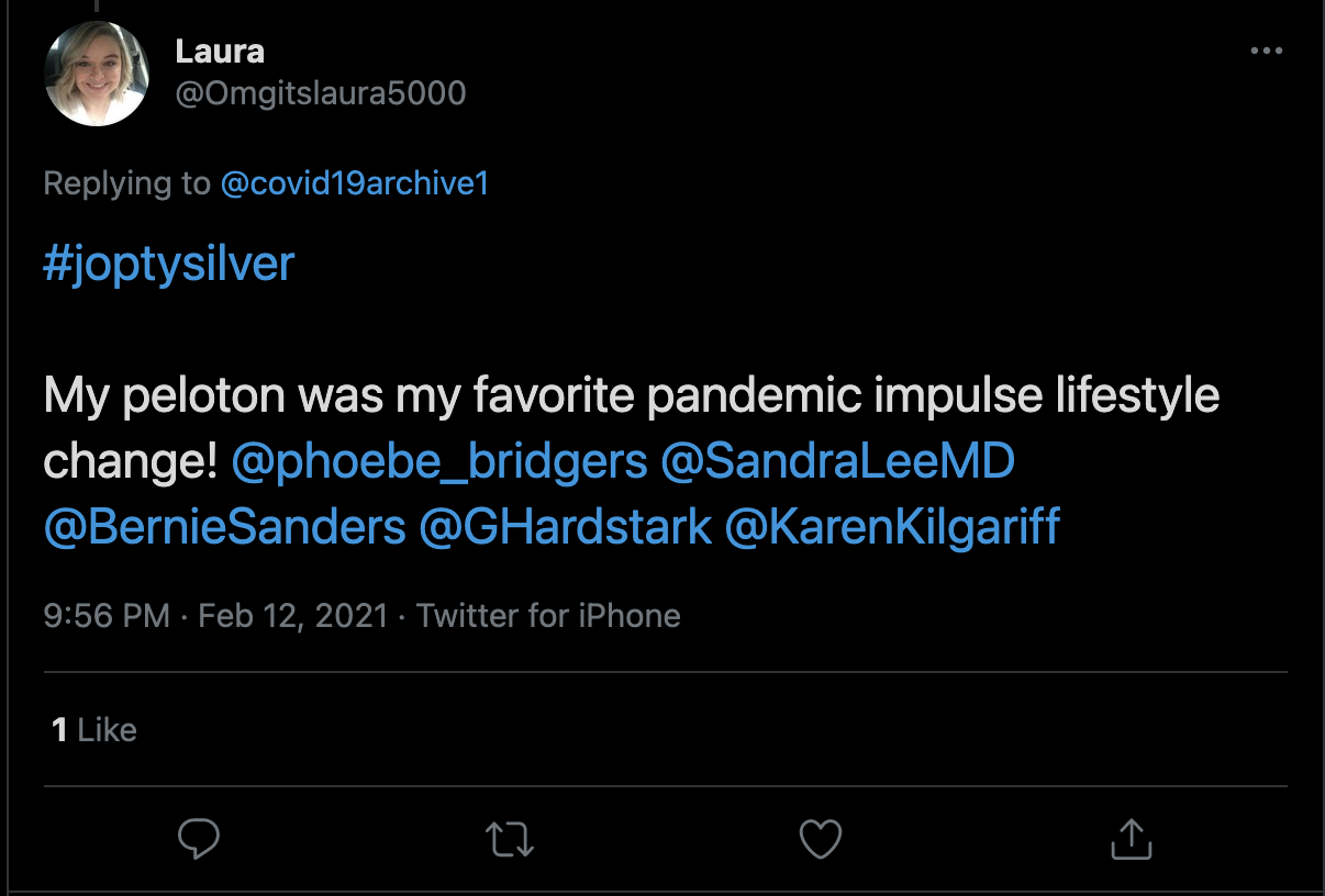My peloton was my favorite pandemic impulse lifestyle change! @phoebe_bridgers @SandraLeeMD @BernieSanders @GHardstark @KarenKilgariff