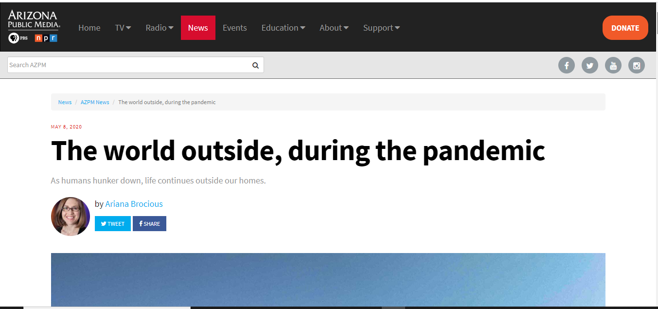 The article describes how the pandemic has affected the natural environment in Arizona: the building of the border wall between the US and Mexico (with great effects on animals), the changes to how firefighters will put out fires during this time to adhere to social distancing guidelines, and the increase in trash in federal natural areas. It has described how some people have gained a new appreciation for the environment during these times.