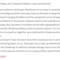 Resilience, Hope, and Turbulent Waters: have we learned? |