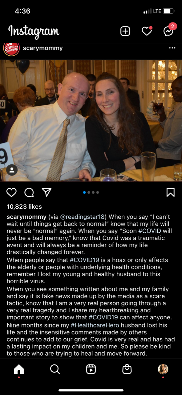 Nine months since my #HealthcareHero husband lost his life and the insensitive comments made by others continues to add to our grief. Covid is very real and has had a lasting impact on my children and me. So please be kind to those who are trying to heal and move forward."