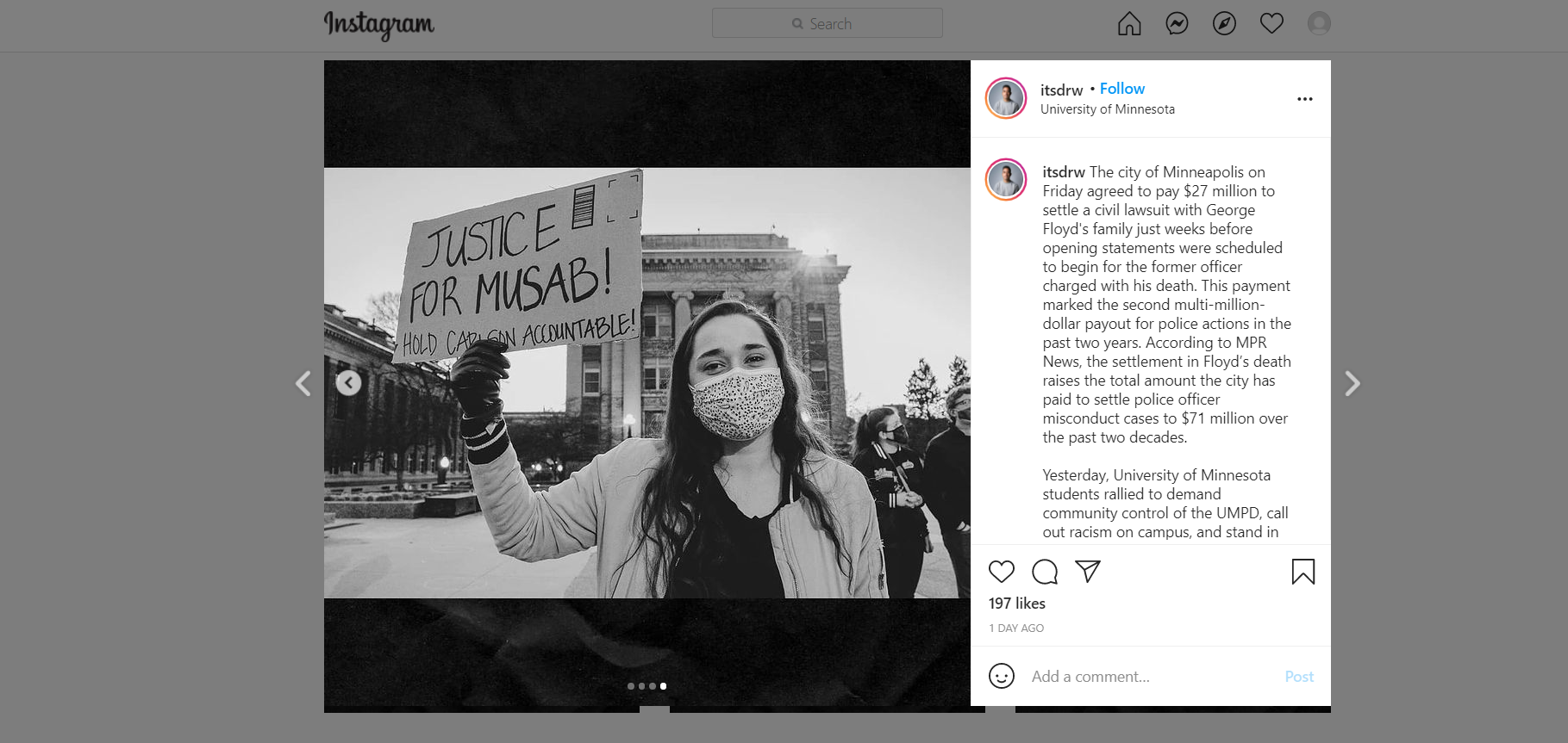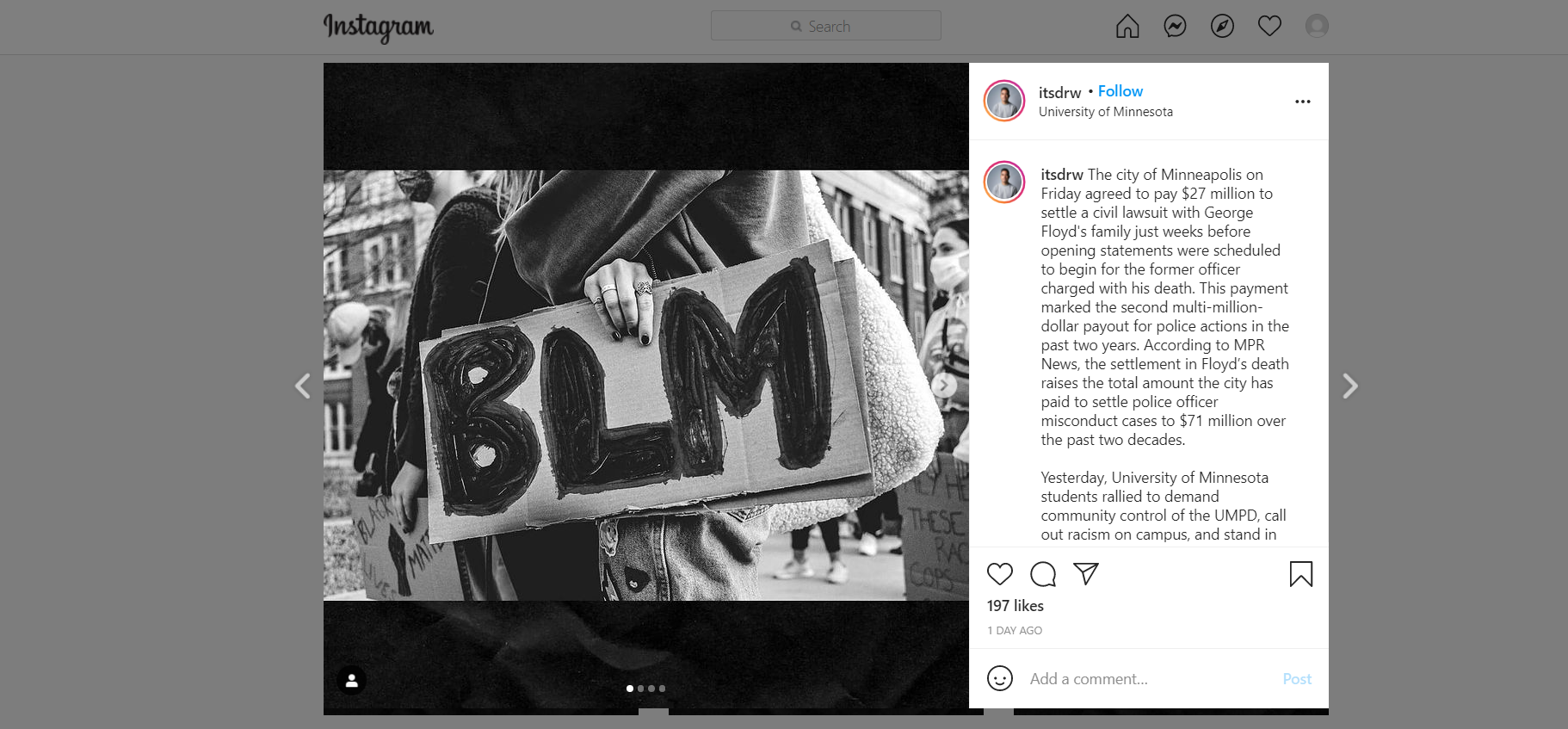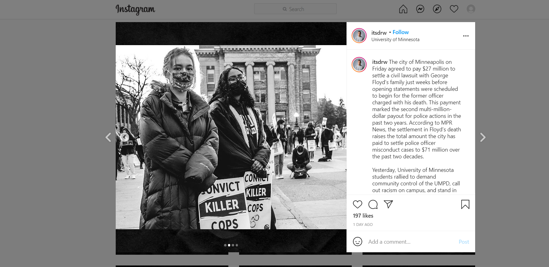 From the Instagram post: The city of Minneapolis on Friday agreed to pay $27 million to settle a civil lawsuit with George Floyd's family just weeks before opening statements were scheduled to begin for the former officer charged with his death. This payment marked the second multi-million-dollar payout for police actions in the past two years. According to MPR News, the settlement in Floyd’s death raises the total amount the city has paid to settle police officer misconduct cases to $71 million over the past two decades.