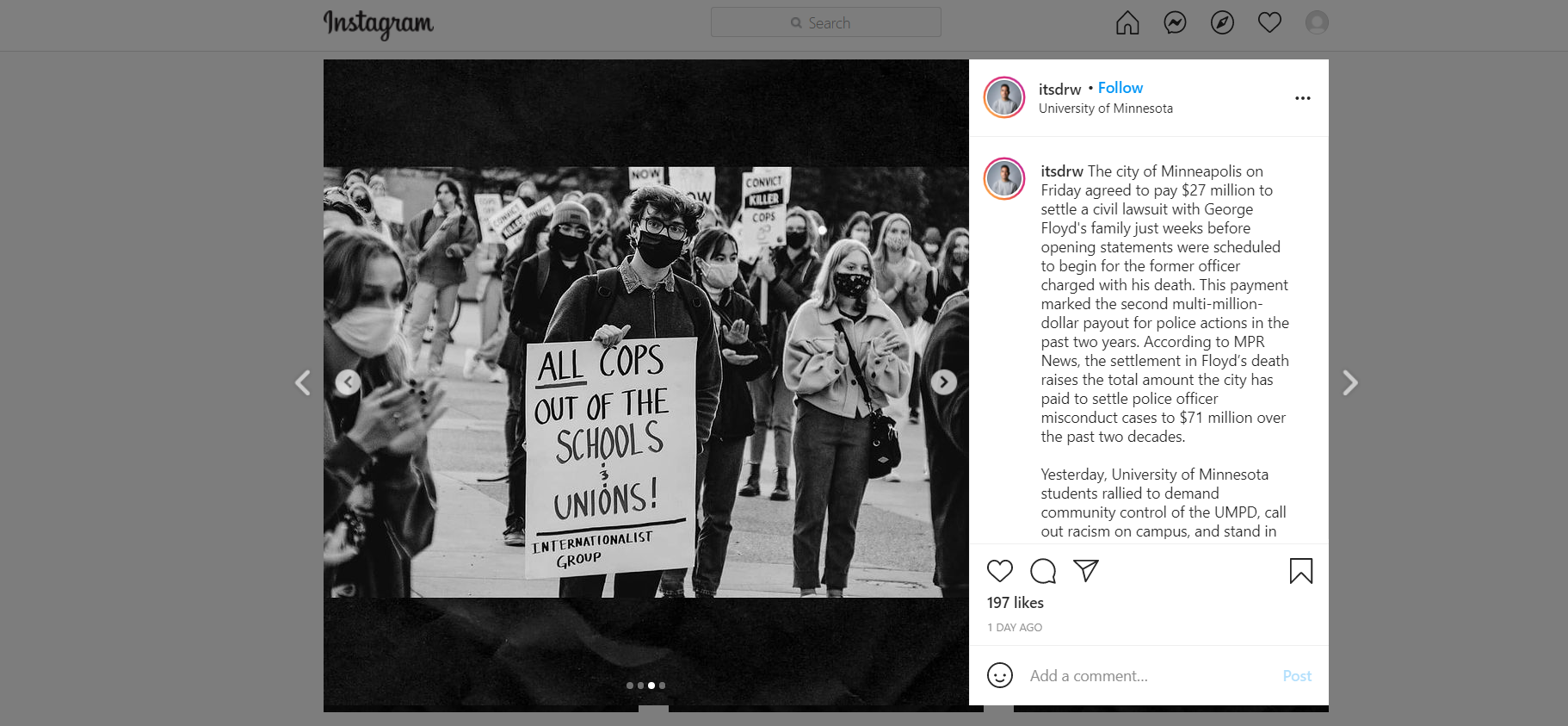Yesterday, University of Minnesota students rallied to demand community control of the UMPD, call out racism on campus, and stand in solidarity with the family of George Floyd.