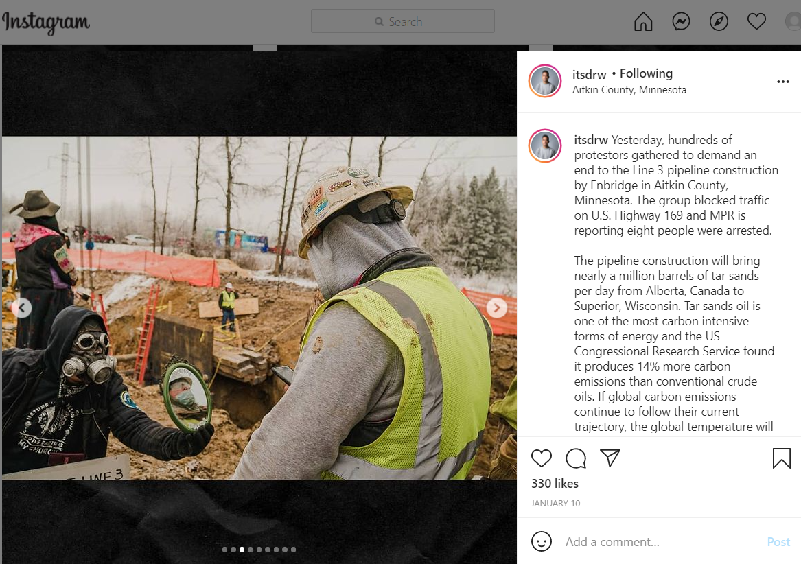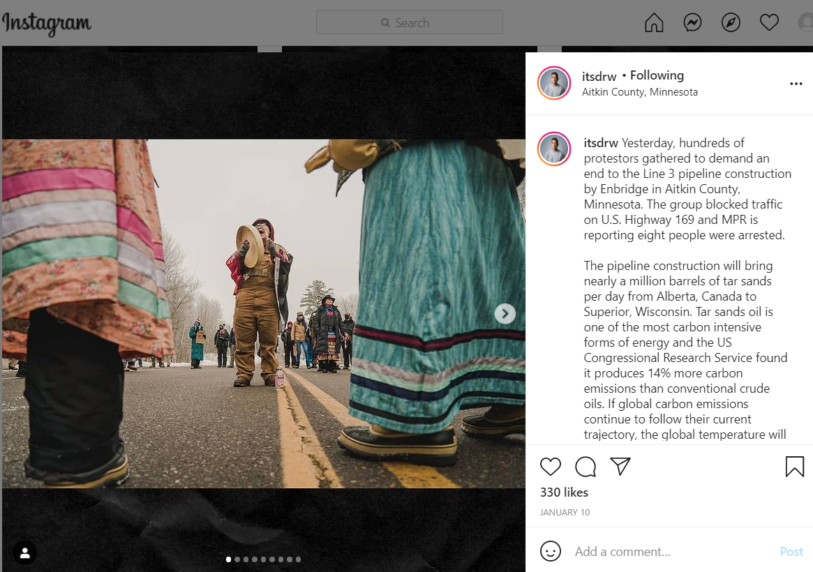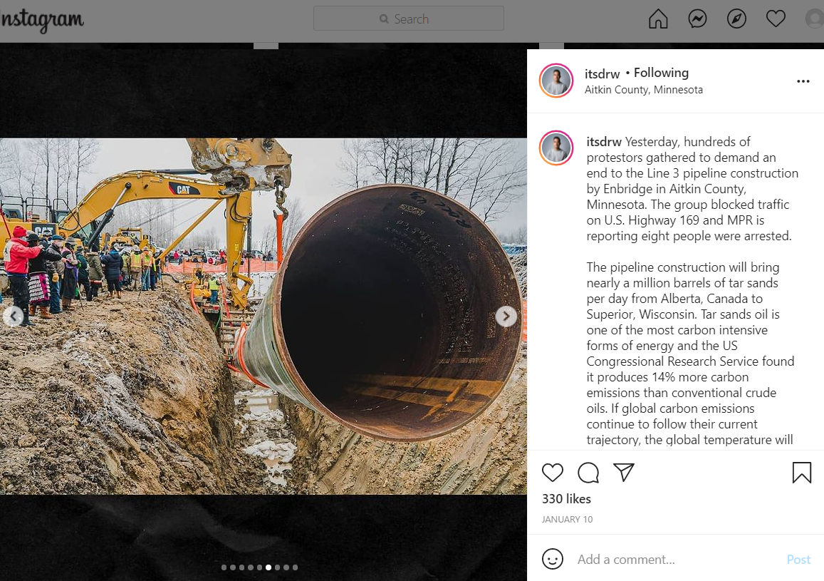 Yesterday, hundreds of protestors gathered to demand an end to the Line 3 pipeline construction by Enbridge in Aitkin County, Minnesota. The group blocked traffic on U.S. Highway 169 and MPR is reporting eight people were arrested.