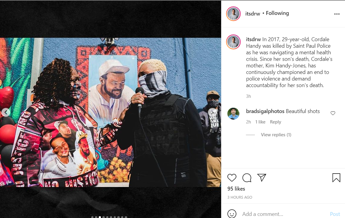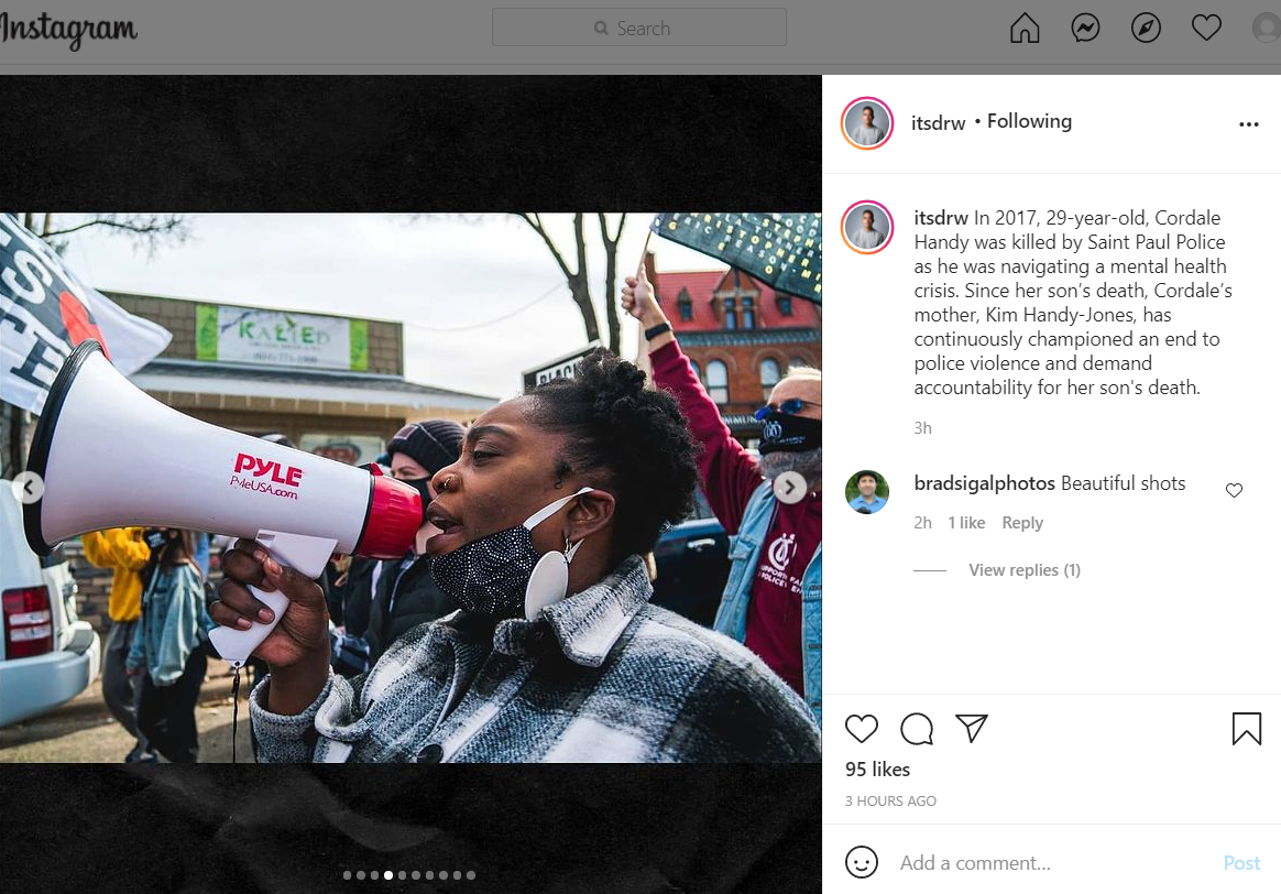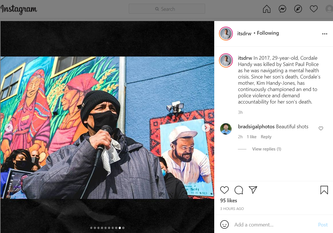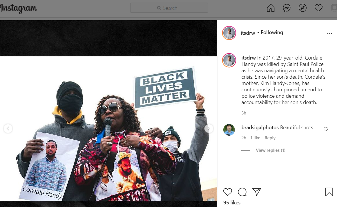In 2017, 29-year-old, Cordale Handy was killed by Saint Paul Police as he was navigating a mental health crisis. Since her son’s death, Cordale’s mother, Kim Handy-Jones, has continuously championed an end to police violence and demand accountability for her son's death.
