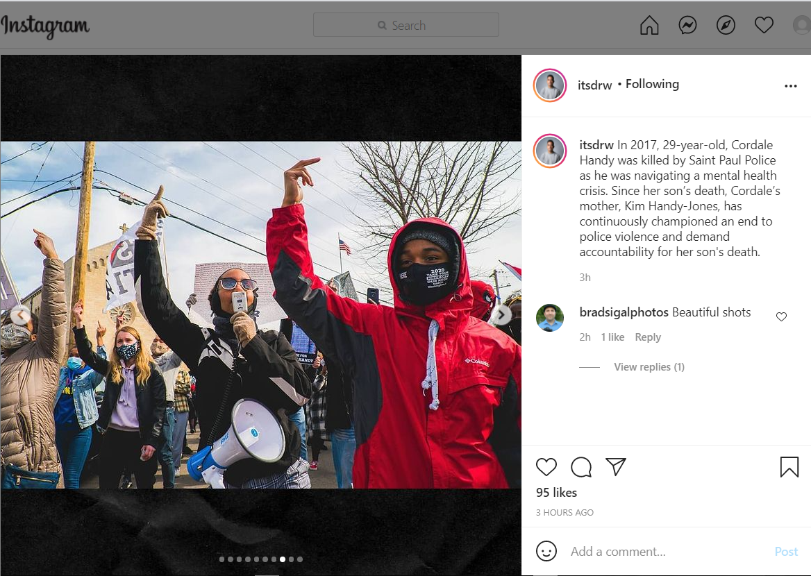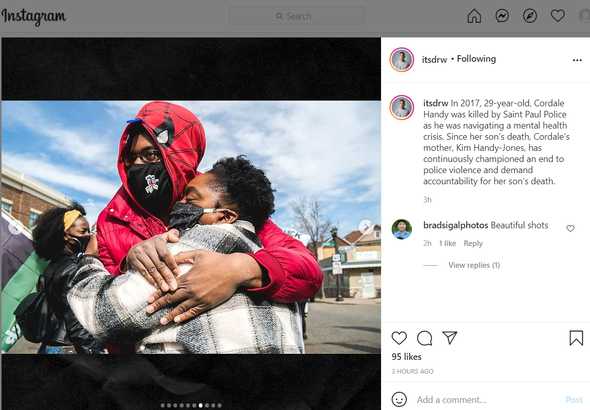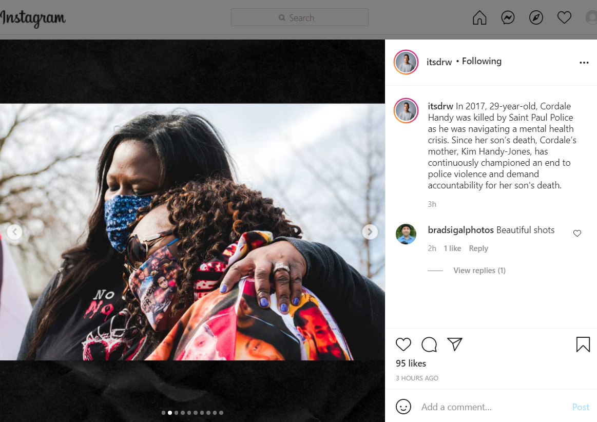 In 2017, 29-year-old, Cordale Handy was killed by Saint Paul Police as he was navigating a mental health crisis. Since her son’s death, Cordale’s mother, Kim Handy-Jones, has continuously championed an end to police violence and demand accountability for her son's death.
