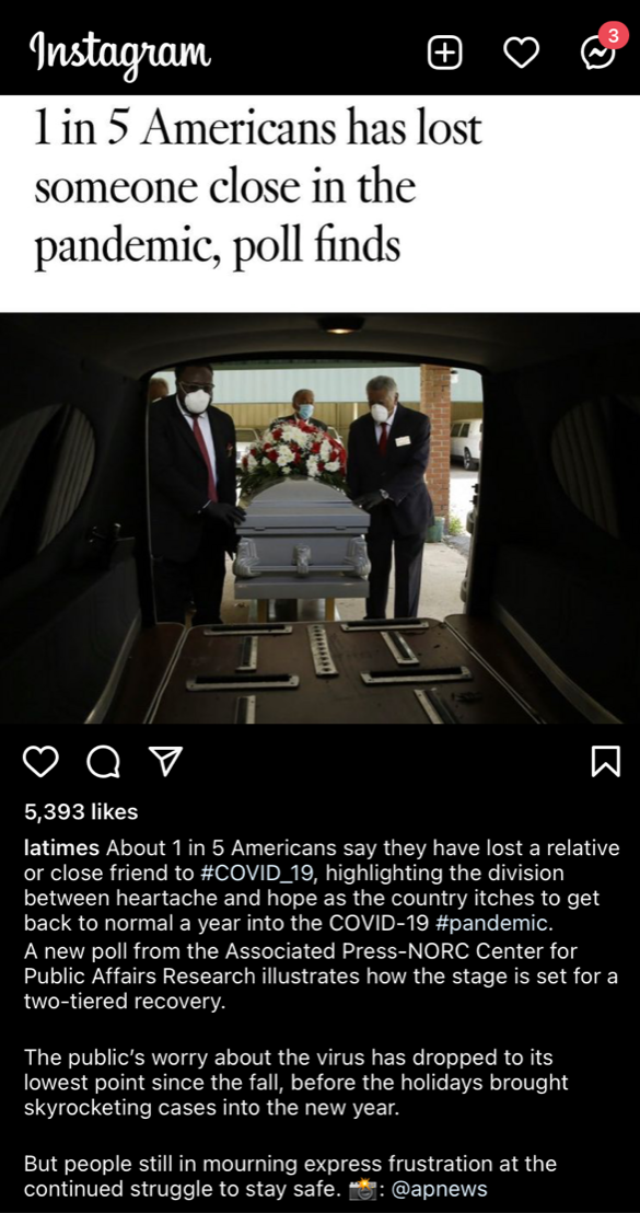 "About 1 in 5 Americans say they have lost a relative or close friend to #COVID_19, highlighting the division between heartache and hope as the country itches to get back to normal a year into the COVID-19 #pandemic. A new poll from the Associated Press- NORC Center for Public Affairs Research illustrates how the stage is set for a two-tiered recovery.