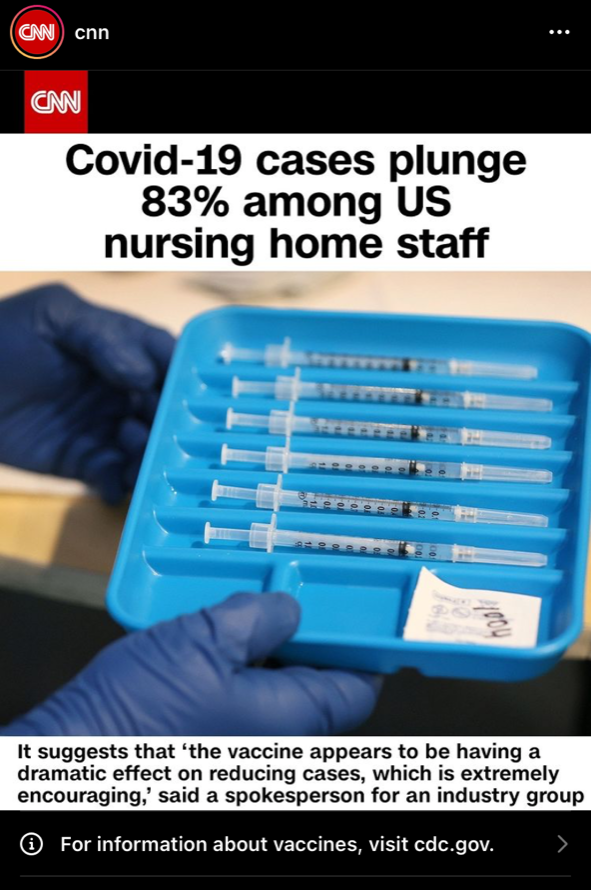 "After the rollout of Covid-19 vaccine, the number of new cases among nursing home staff members fell 83%, data from the Centers for Medicare & Medicaid Services shows. "It's a big relief for me," said Joan Phillips, who works at the North Beach Rehabilitation Center outside Miami. More than 3 million doses of vaccine have been doled out in nursing homes across the US."