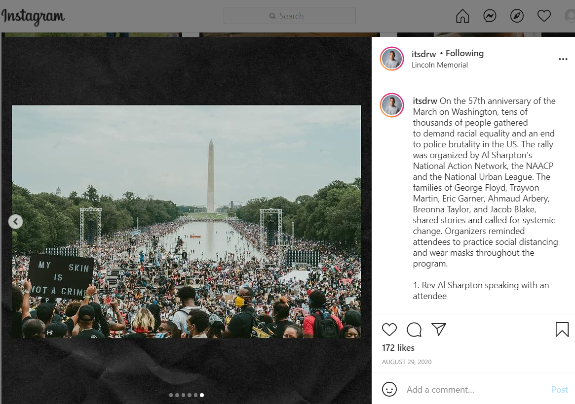 On the 57th anniversary of the March on Washington, tens of thousands of people gathered to demand racial equality and an end to police brutality in the US. The rally was organized by Al Sharpton’s National Action Network, the NAACP and the National Urban League. The families of George Floyd, Trayvon Martin, Eric Garner, Ahmaud Arbery, Breonna Taylor, and Jacob Blake, shared stories and called for systemic change. Organizers reminded attendees to practice social distancing and wear masks throughout the program.
