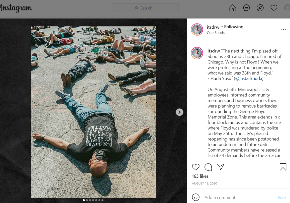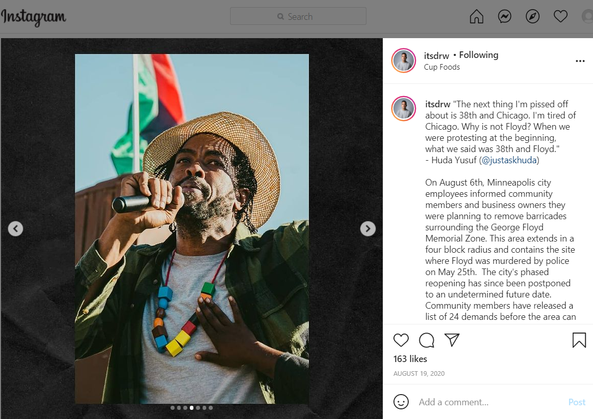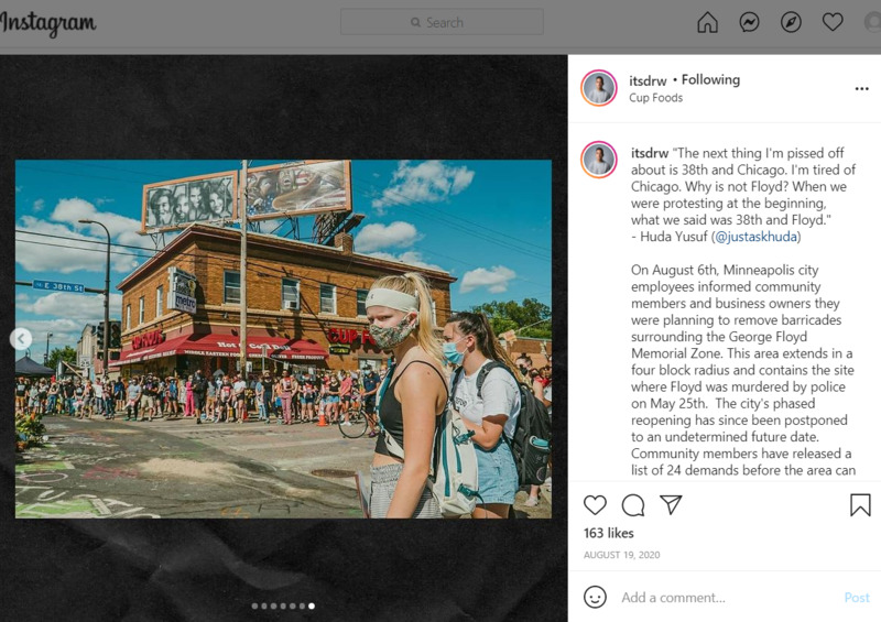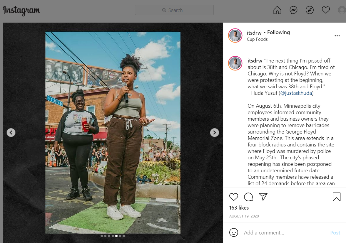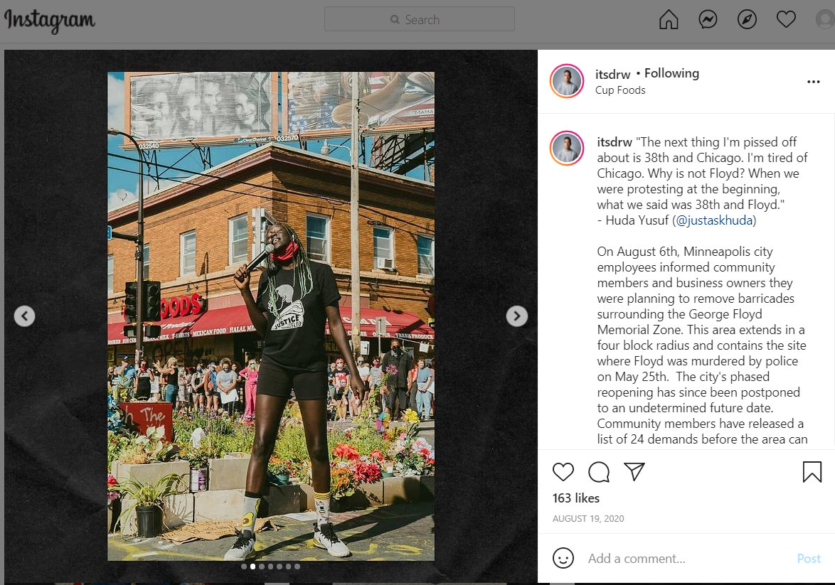 "The next thing I'm pissed off about is 38th and Chicago. I'm tired of Chicago. Why is not Floyd? When we were protesting at the beginning, what we said was 38th and Floyd." - Huda Yusuf (@justaskhuda)