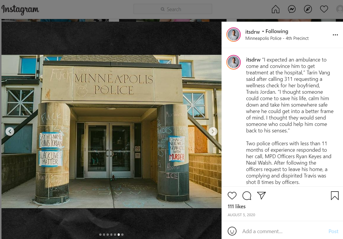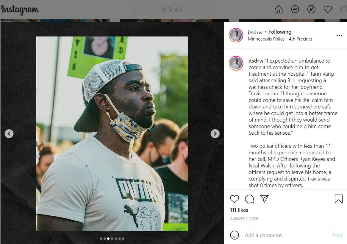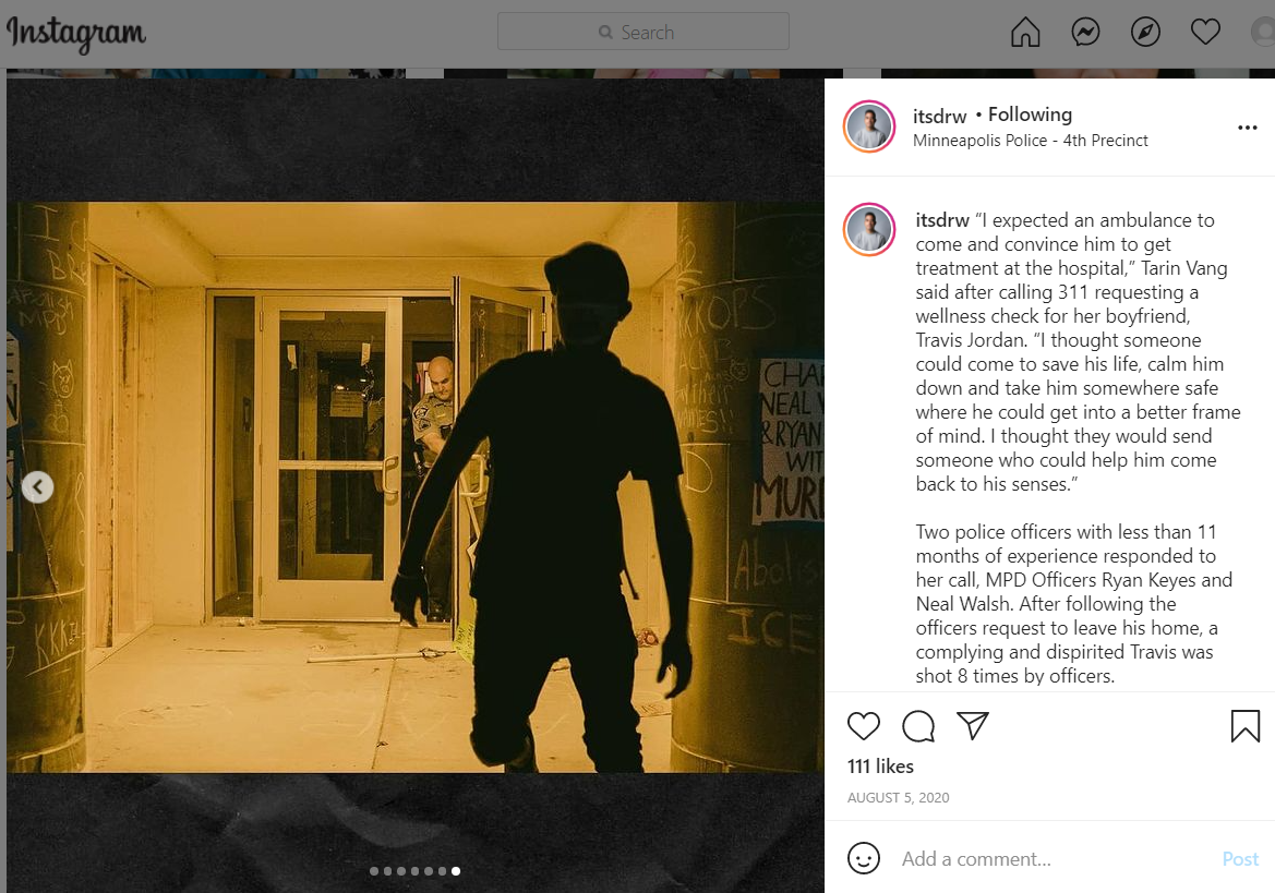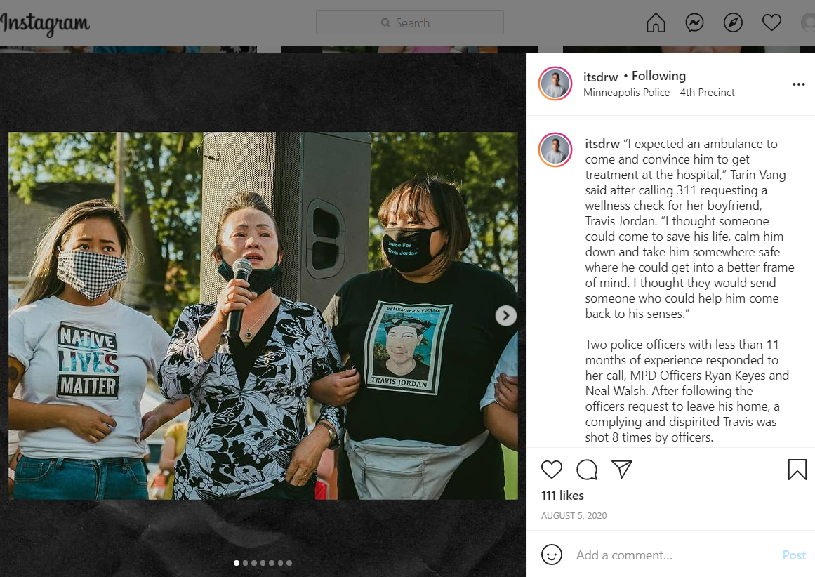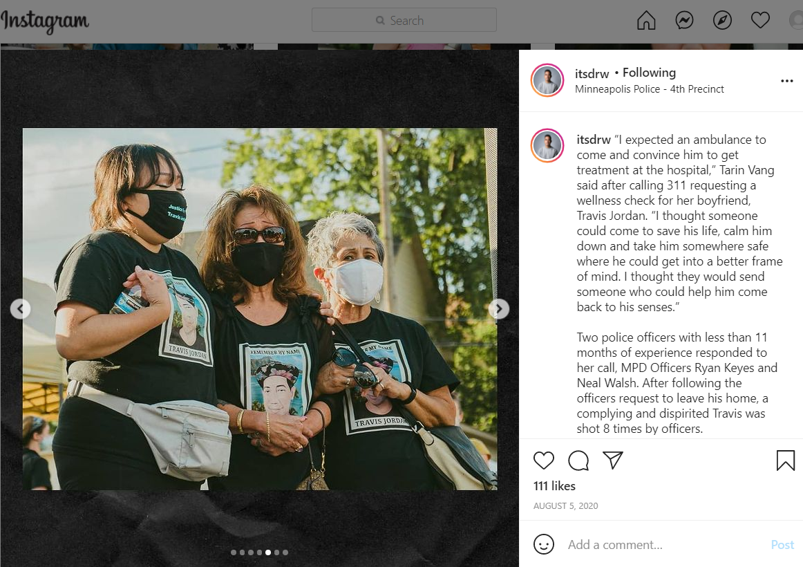 “I expected an ambulance to come and convince him to get treatment at the hospital,” Tarin Vang said after calling 311 requesting a wellness check for her boyfriend, Travis Jordan. “I thought someone could come to save his life, calm him down and take him somewhere safe where he could get into a better frame of mind. I thought they would send someone who could help him come back to his senses.”