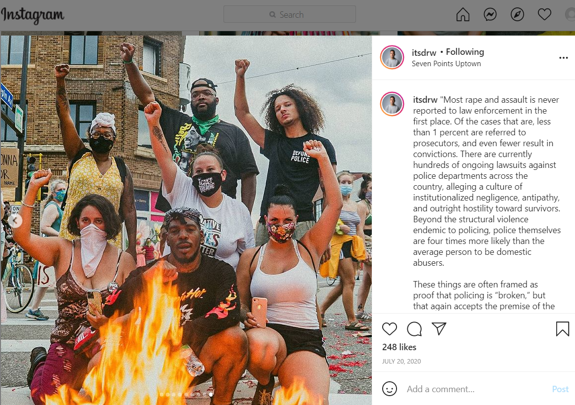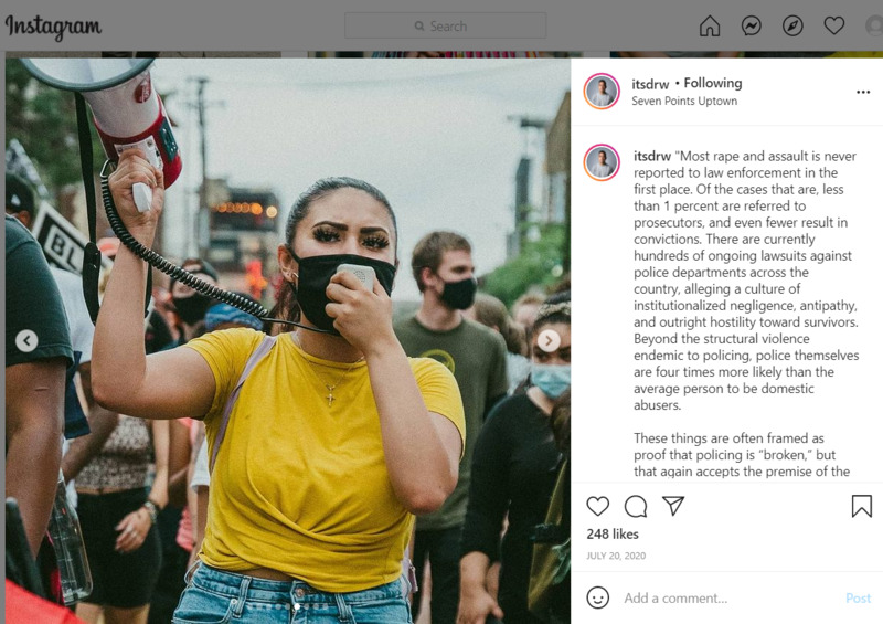 "Most rape and assault is never reported to law enforcement in the first place. Of the cases that are, less than 1 percent are referred to prosecutors, and even fewer result in convictions. There are currently hundreds of ongoing lawsuits against police departments across the country, alleging a culture of institutionalized negligence, antipathy, and outright hostility toward survivors. Beyond the structural violence endemic to policing, police themselves are four times more likely than the average person to be domestic abusers.