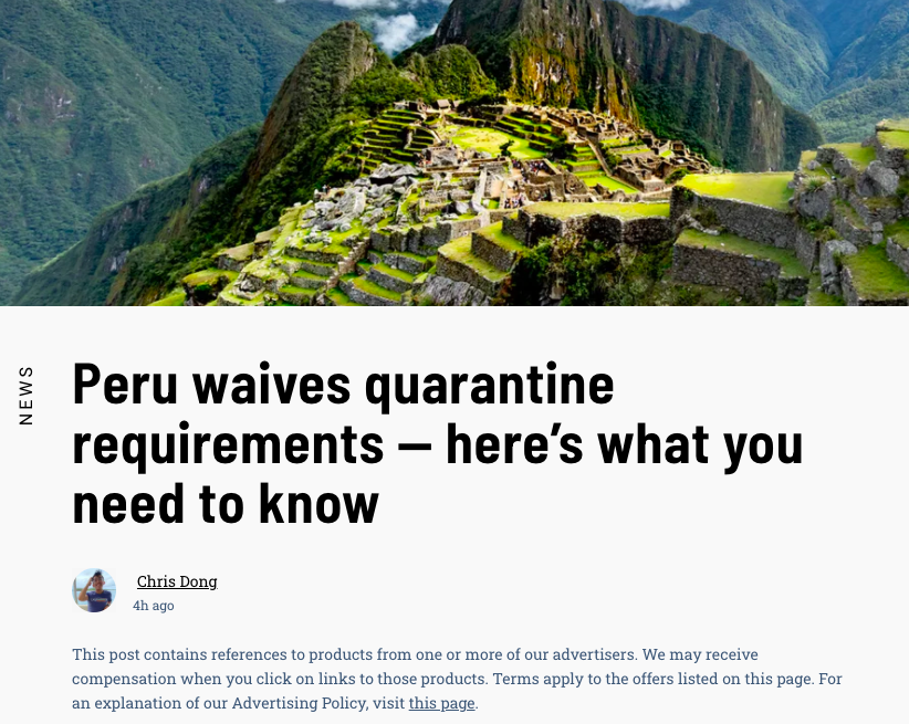 Peru, which continues to suffer from high COVID-19 transmission rates, has lifted quarantine restrictions for international travelers. The Peruvian economy has been undermined by a loss of tourism, its affected restaurants, hotels, guides, transportation, and other facets that depend on foreign capital. The only catch is that you have to have a negative COVID-19 test 72 hours prior to arrival. All of this hints at the importance of money and influence after all-it's mostly wealthier travelers who would have the money to travel for leisure and access to COVID testing. But...what about everyone else on the plane?