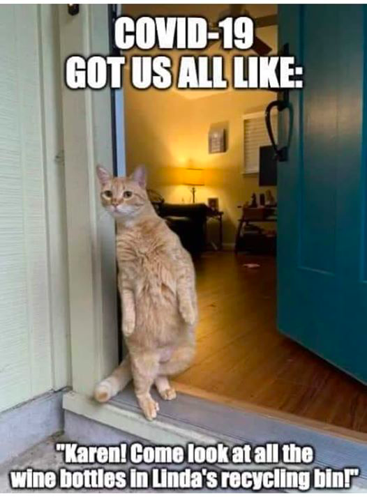 This meme honestly describes how peoples quarantine was like. The meme shows someone "exposing" someone of drinking a lot of wine. Which makes me wonder if it was a good thing that people were able to spend more time at home or was it more of a bad thing. My quarantine was similar to this meme, in the sense that I had no motivation to do anything but watch tv all day and eat bad food.