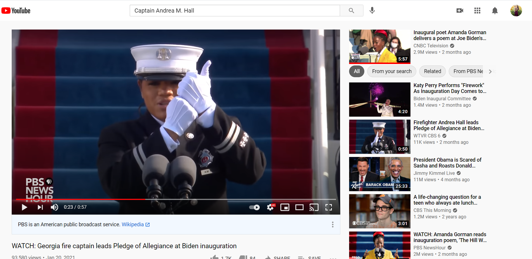 Georgia Fire Captain Andrea M. Hall recited the Pledge of Allegiance at the inauguration of President-elect Joe Biden on Wednesday morning. She also signed in American Sign Language as she spoke.