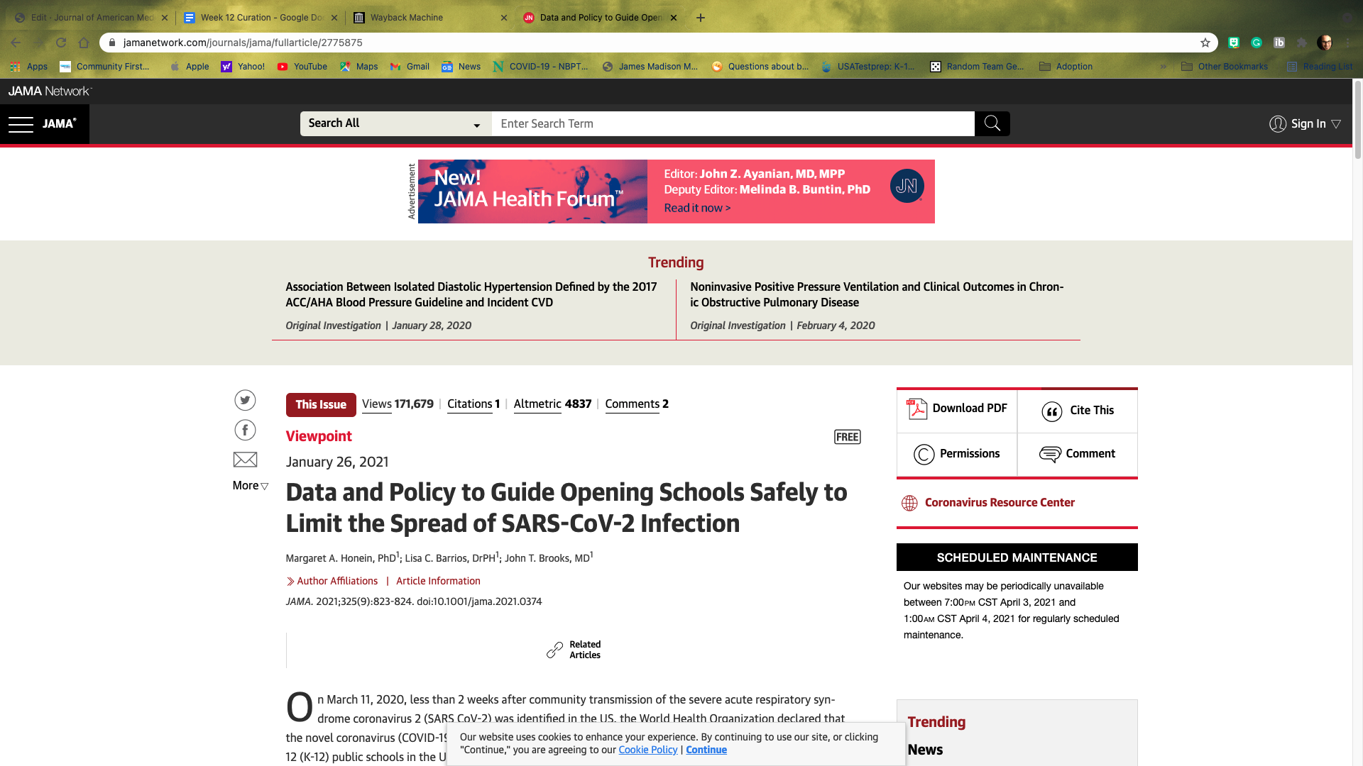The article references numerous case studies and research which suggest that transmission between students should not be a determining factor in postponing in-person instruction. External factors (i.e. local communities) are analysis in the article to offer another perspective about the dangers of students in the classroom. The article does provide recommendations to mitigate the spread of the virus between students, teachers, and staff.