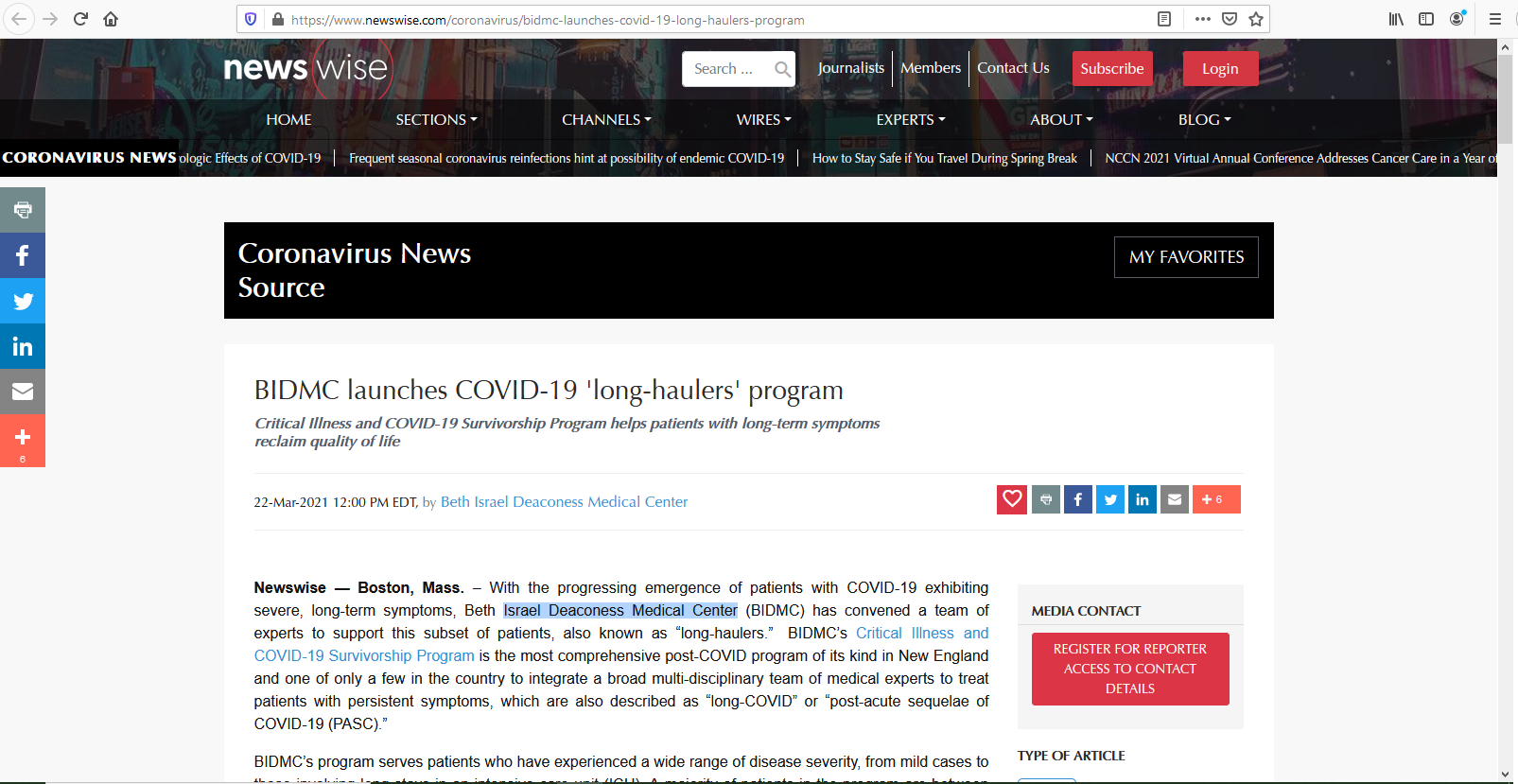 This article is about the new team at Beth Israel Deaconess Medical Center in Boston whose purpose will be to study and support Covid-19 patients with long-term symptoms. These "long-haulers" have an array of physical and mental problems after their recovery from Covid-19. Unfortunately, since research on this virus and it's effects are quite new, experts are still finding out more everyday. This team at BIDMC is one of a few multi-disciplinary teams in the country that is specifically established to provide comprehensive care to these "long-haulers." With so many people contracting Covid-19, teams like this will be critical in how we move forward. As a matter of public health, we need to better understand if there are physiological changes to things like our lung and airway structures, brains, and other organs from having Covid, and if they are permanently damaged or not. This team will not only help these patients, but also help discover important answers for the public as a whole.