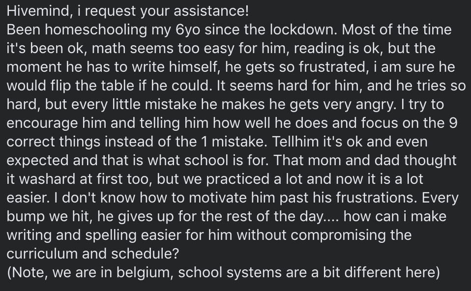 The next mom is worried about how her child is going to come out on top due to homeschooling. She wants advice on how to keep her son motivated and not give up when things get hard. There is no way to tell exactly how this pandemic has affected our kids, only time will tell. But there have definitely been some unintended consequences. This example shows that while we are parents and we love our children, we have no idea what the teachers were doing to help our kids through each class before the pandemic. Perhaps one consequence of the pandemic will be a larger respect for teachers.