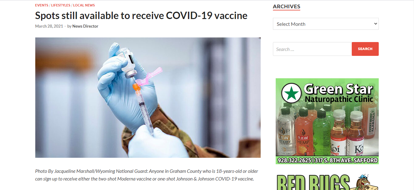 Graham County (AZ): Spots still available to receive COVID-19 vaccine