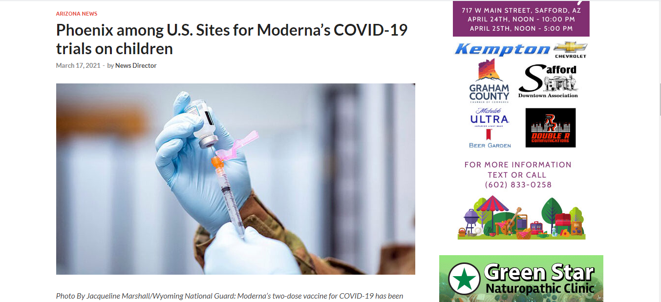 Phoenix among U.S. Sites for Moderna’s COVID-19 trials on children